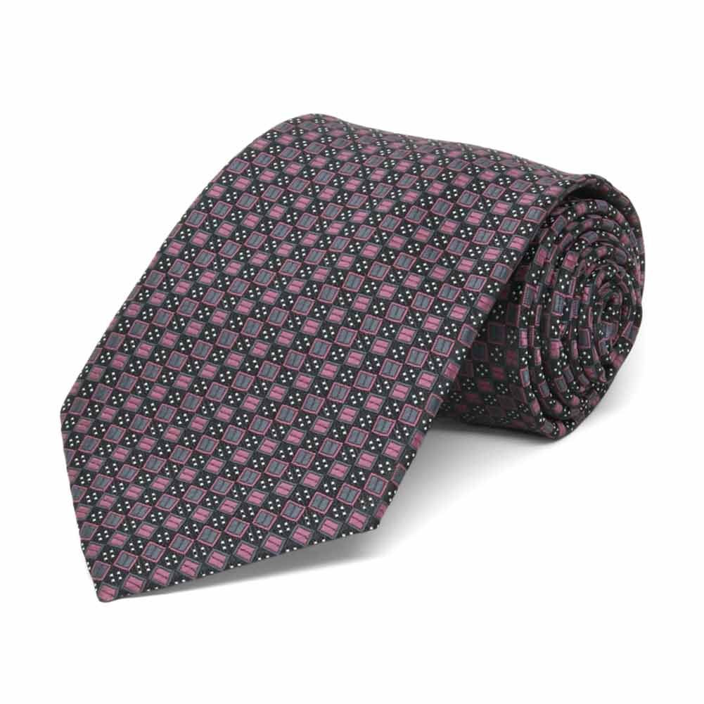 This boys' necktie is sure to become a favorite! Featuring a small pink, black and gray square pattern, this tie blends subtle style with a touch of personality. Its understated yet versatile design makes it perfect for both casual and formal occasions. Whether he's dressing up for a wedding, school event or family photos, this tie will keep him looking stylish. Pair it with a dress shirt and slacks for a polished look that stands out in all the right ways!