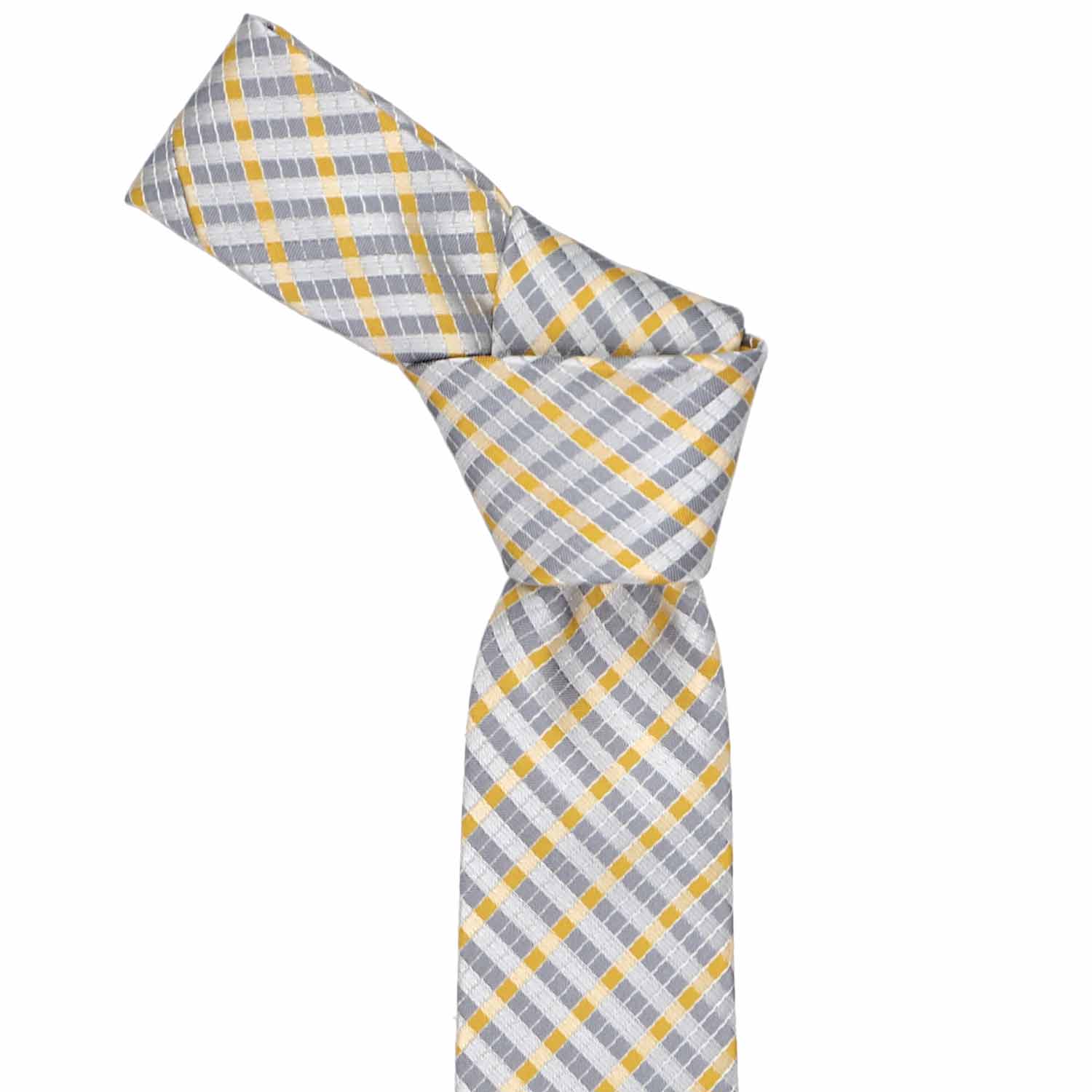 This boys' silver gingham-inspired tie is the perfect blend of classic style and modern charm—ideal for ring bearer duties or dressy school photos. Subtle hints of yellow add just the right touch of personality to the timeless pattern, making it versatile for both casual and formal occasions. Pair it with a dark gray, navy, or black suit for a polished look at special events, or keep it refined yet relaxed with gray slacks for everyday wear.
