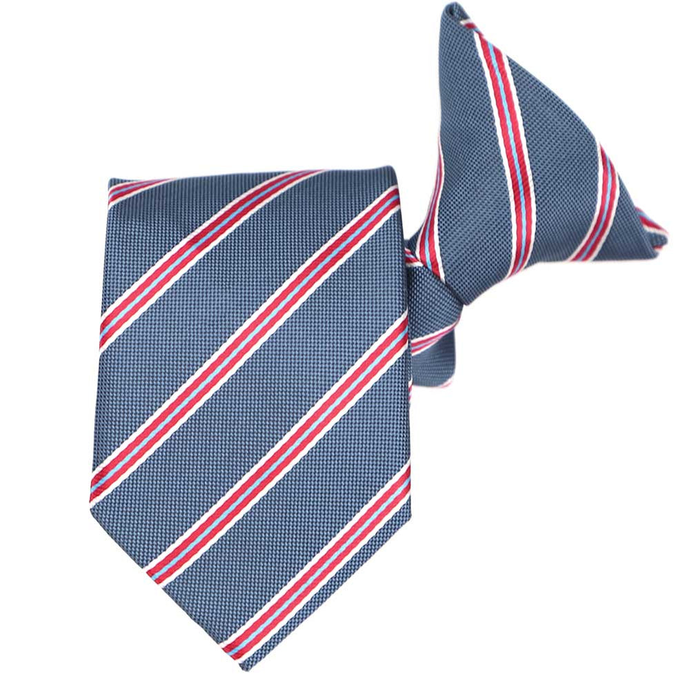 Effortlessly stylish! This boys' denim clip-on tie, featuring red and white pencil stripes, strikes the perfect balance between casual and classic. Ideal for picture day, family gatherings, or coordinating a father-son look, it’s a versatile addition to his wardrobe. Dress it up with a navy suit or keep it cool with dark denim and a button-down. No matter the occasion, this tie ensures he looks his best!