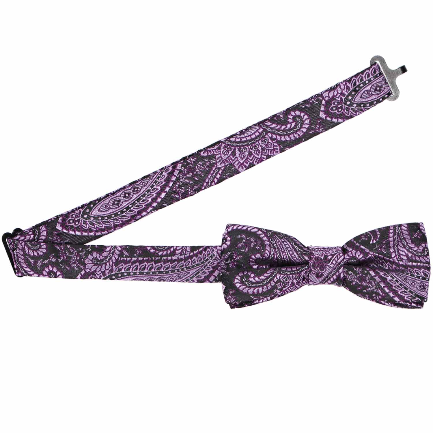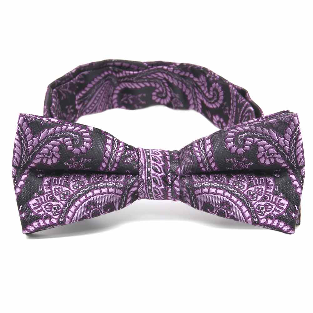 Dress your ring bearer in style with this elegant eggplant purple paisley bow tie—perfect for a fall wedding! The bold, yet timeless pattern adds a touch of charm, while the rich shades of purple beautifully complement dusty purple wedding palettes. Whether paired with black, gray, or navy blue suits, this bow tie ensures your ring bearer coordinates seamlessly with the groomsmen for a picture-perfect look down the aisle.