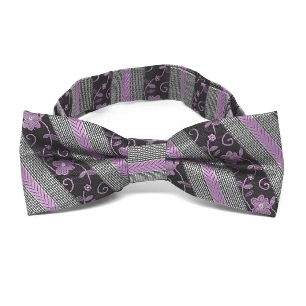 Boys' English Lavender Anna Floral Striped Bow Tie