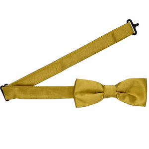 Give his formal wear a classic look with this boys'-sized gold bow tie. The brassy gold hue is a favorite for school uniforms or game-day team outfits. And if you're coordinating family attire, don't forget to check out our matching tie styles for dad.