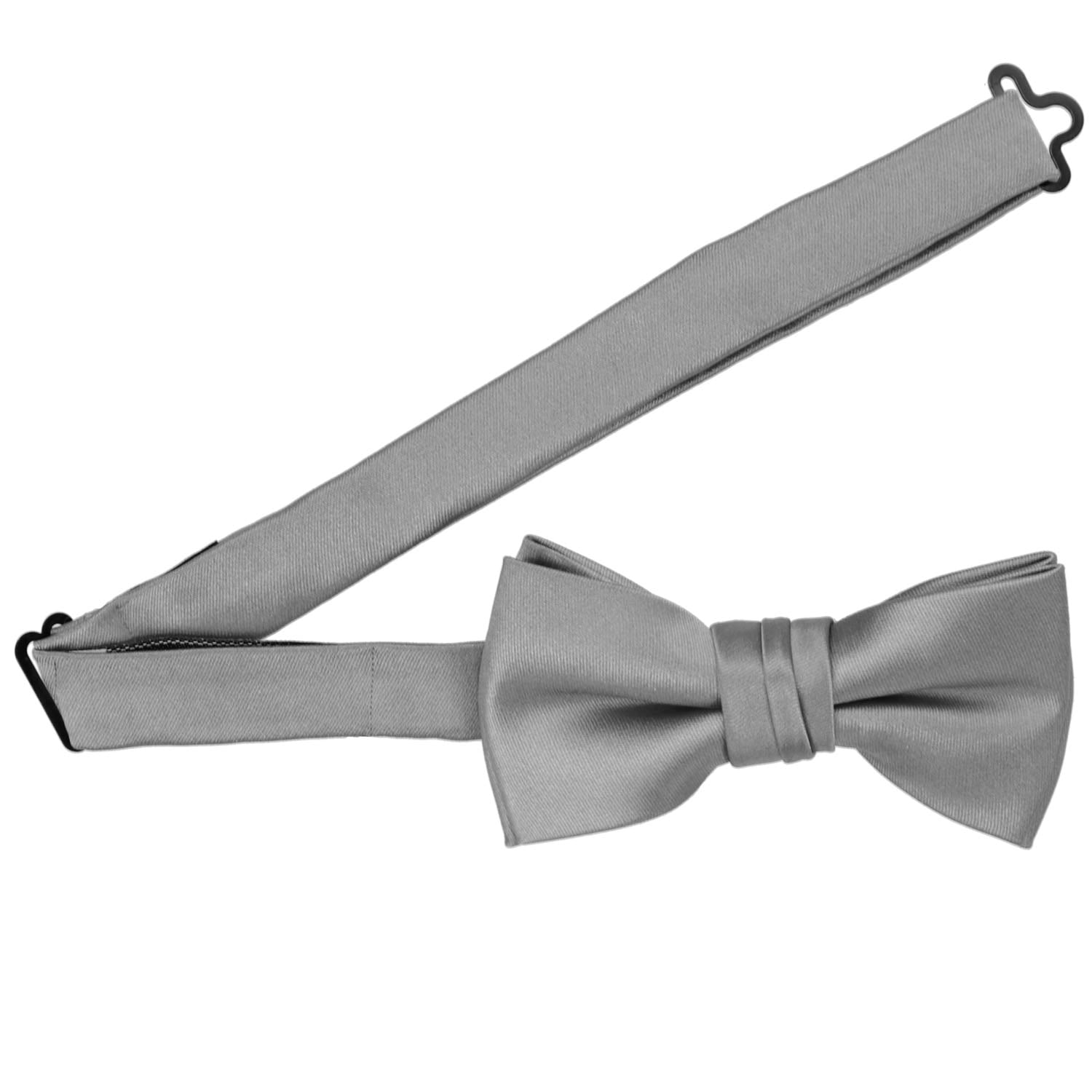 Here’s a boys' bow tie that’s as versatile as it is stylish! Whether he’s dressing up for a wedding, a formal event, or just adding a sharp touch to his everyday shirt and slacks combo, this timeless gray bow tie has him covered. It’s a must-have for any wardrobe, pairing effortlessly with just about anything. Plus, it’s available in a variety of men's styles, lengths, and widths—perfect for outfitting an entire wedding party in coordinated style!