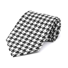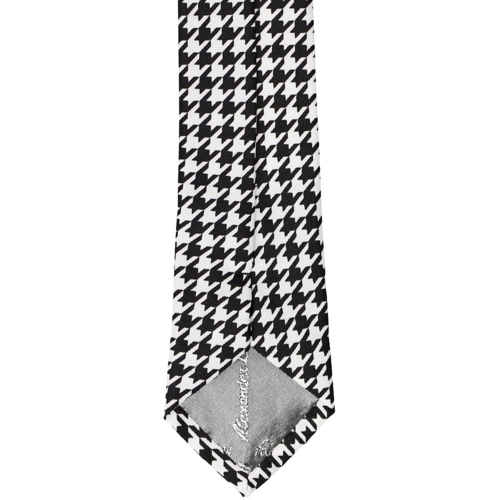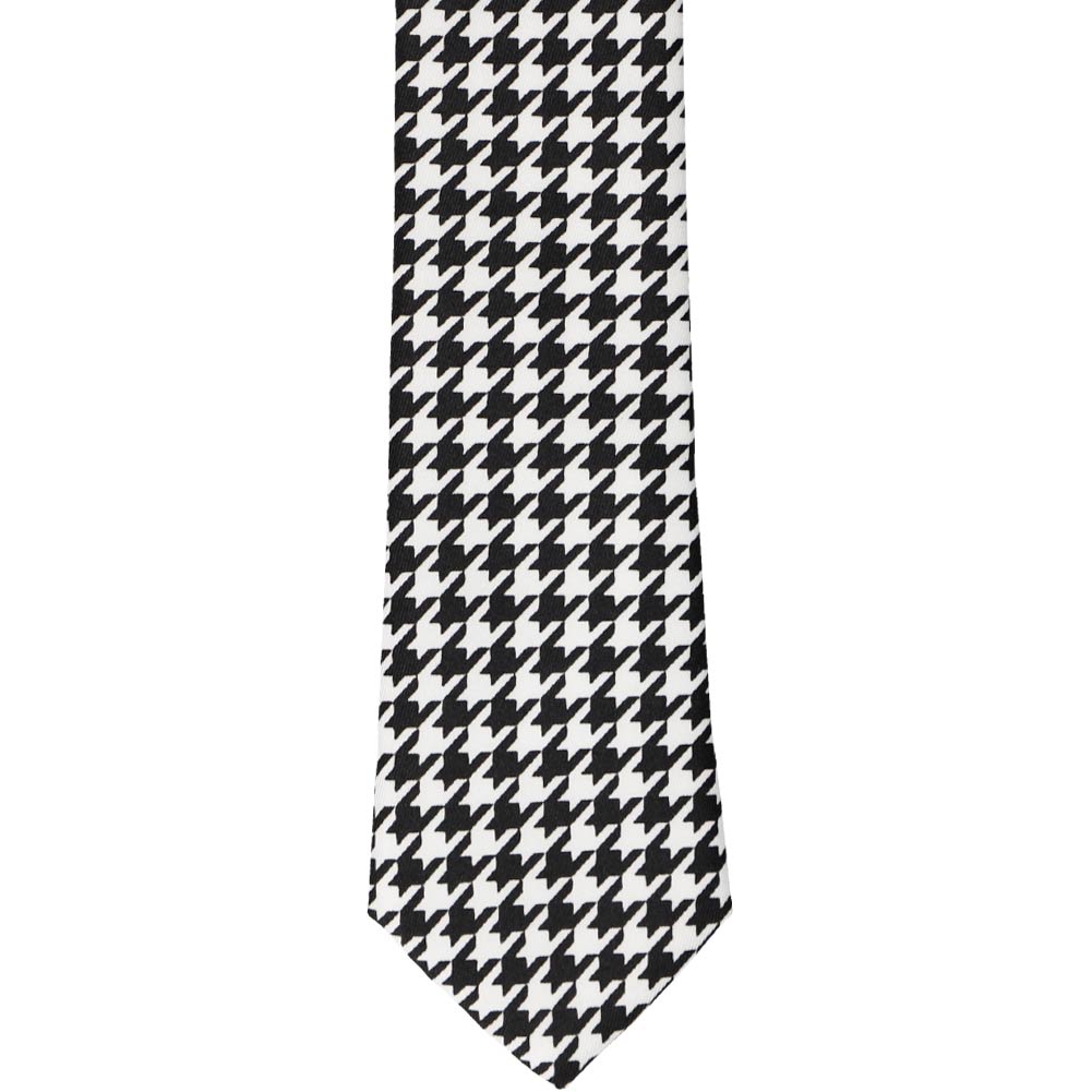 He'll look striking in this boys' houndstooth necktie. The black and white pattern is classic and just the right scale—not too big or too small. This is a standard tie that he ties himself, so it's just like our men's size but in a smaller size. Whether he's wearing a suit or something more casual, the black and white colors are easy to match.