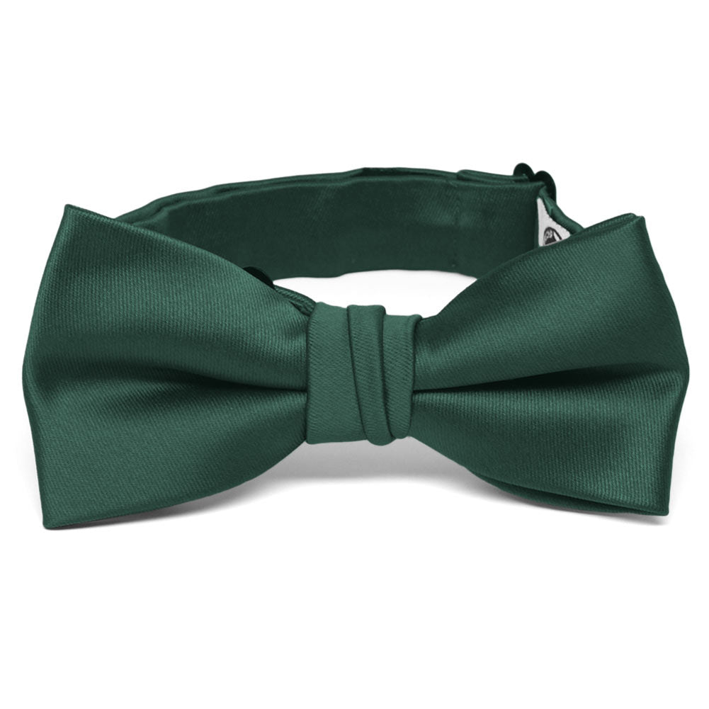 Natural, rustic, and effortlessly elegant—this boys' hunter green bow tie is the perfect finishing touch for his wedding day look! Whether paired with a sleek black suit for a timeless vibe or styled with a modern navy blue or gray suit, this rich green hue always makes a statement. Want to add some variety? Mix and match tie styles among the groom and groomsmen for a personalized touch. This color comes in a variety of men's styles, lengths, and widths, making it easy to coordinate the entire wedding party in style!