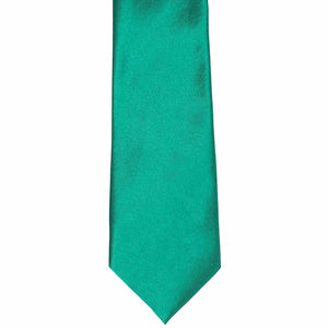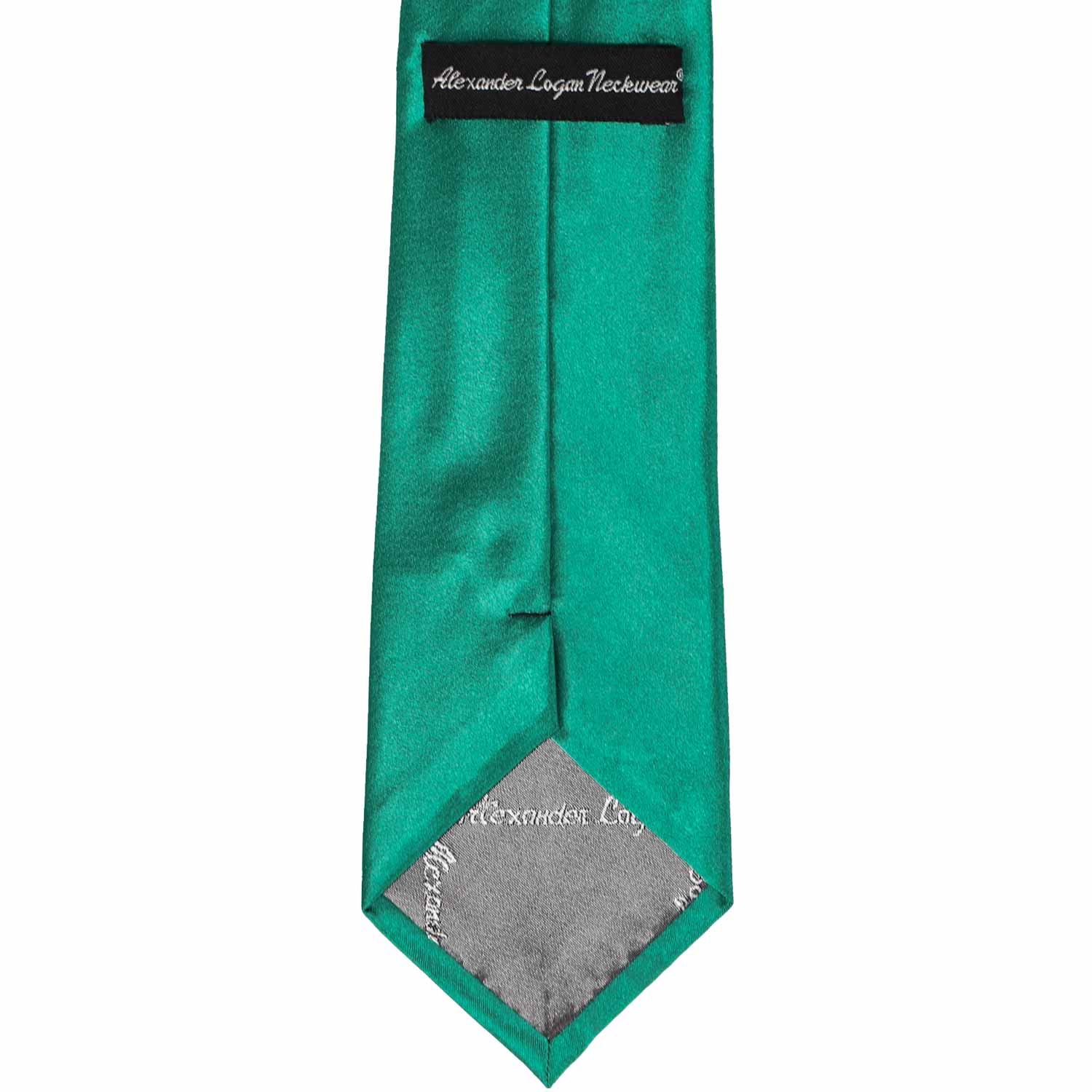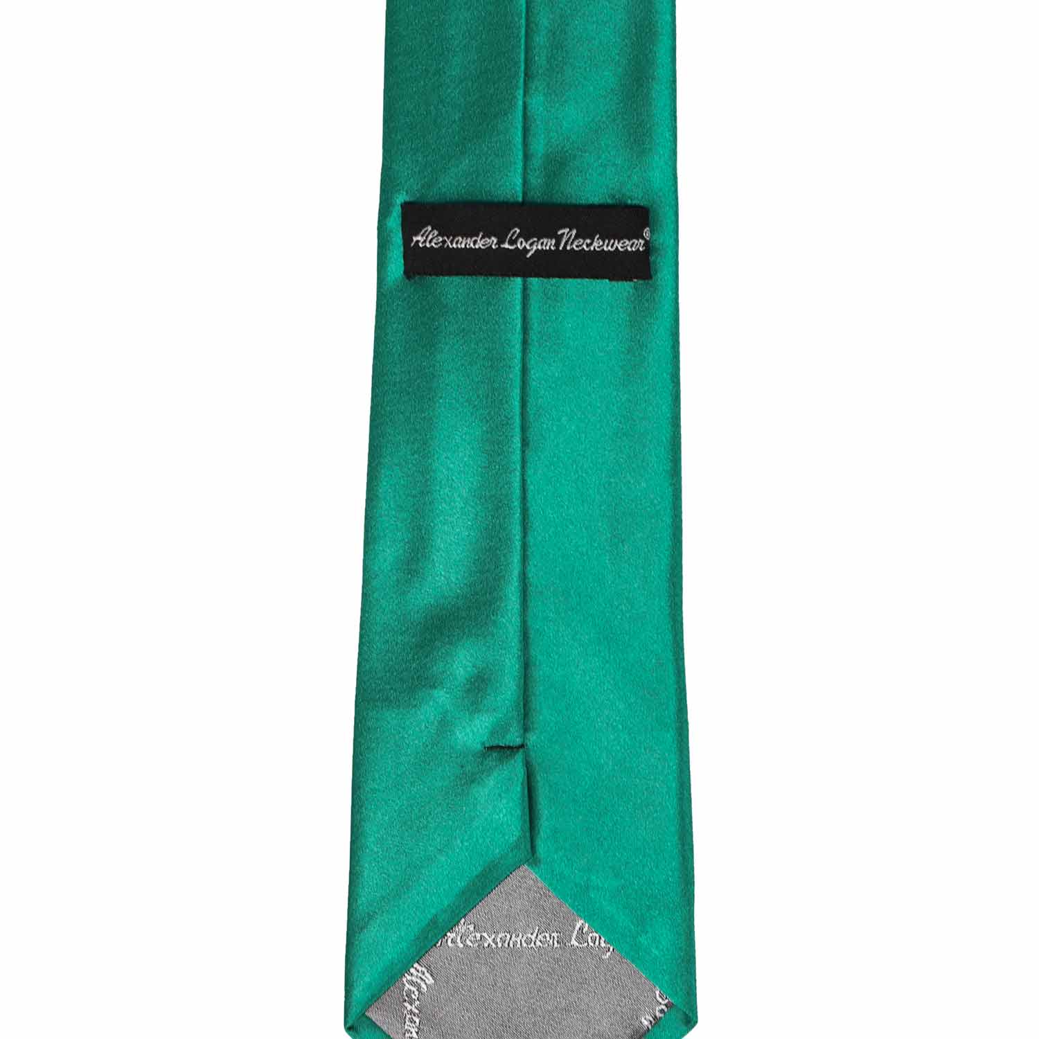 This jade tie features a 48 inch length and 3 inch width. On those 8 to 13 years old, it will look like a traditional tie. The material is soft, silky and finished with a shiny satin sheen.