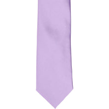 When tied, the tip of a necktie should hit at about the belt line. Typically, this length of tie will fit most children ages 8 to 13 years old. Since kids vary in size, you might want to do a quick measurement to ensure this tie is the best fit. Measure the child from the collar to the belt line. The length measured should be roughly between 14.5 and 17 inches long. Need a different size? For shorter lengths, try a pre-tied boys' tie. For longer lengths, consider a men's tie.