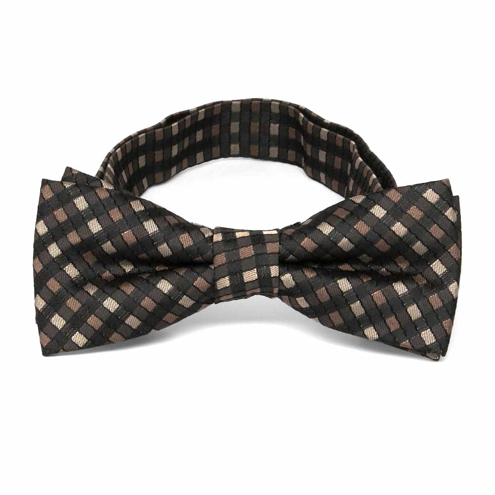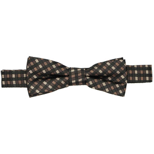 Make getting ready easier with this boys' bow tie—your go-to accessory for quick, stylish outfits. The light and dark brown gingham-inspired pattern pairs perfectly with tan slacks or khakis, keeping him looking sharp without the fuss. For dressier occasions, it looks great with a camel or navy suit. He'll impress at any event!