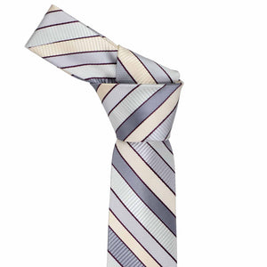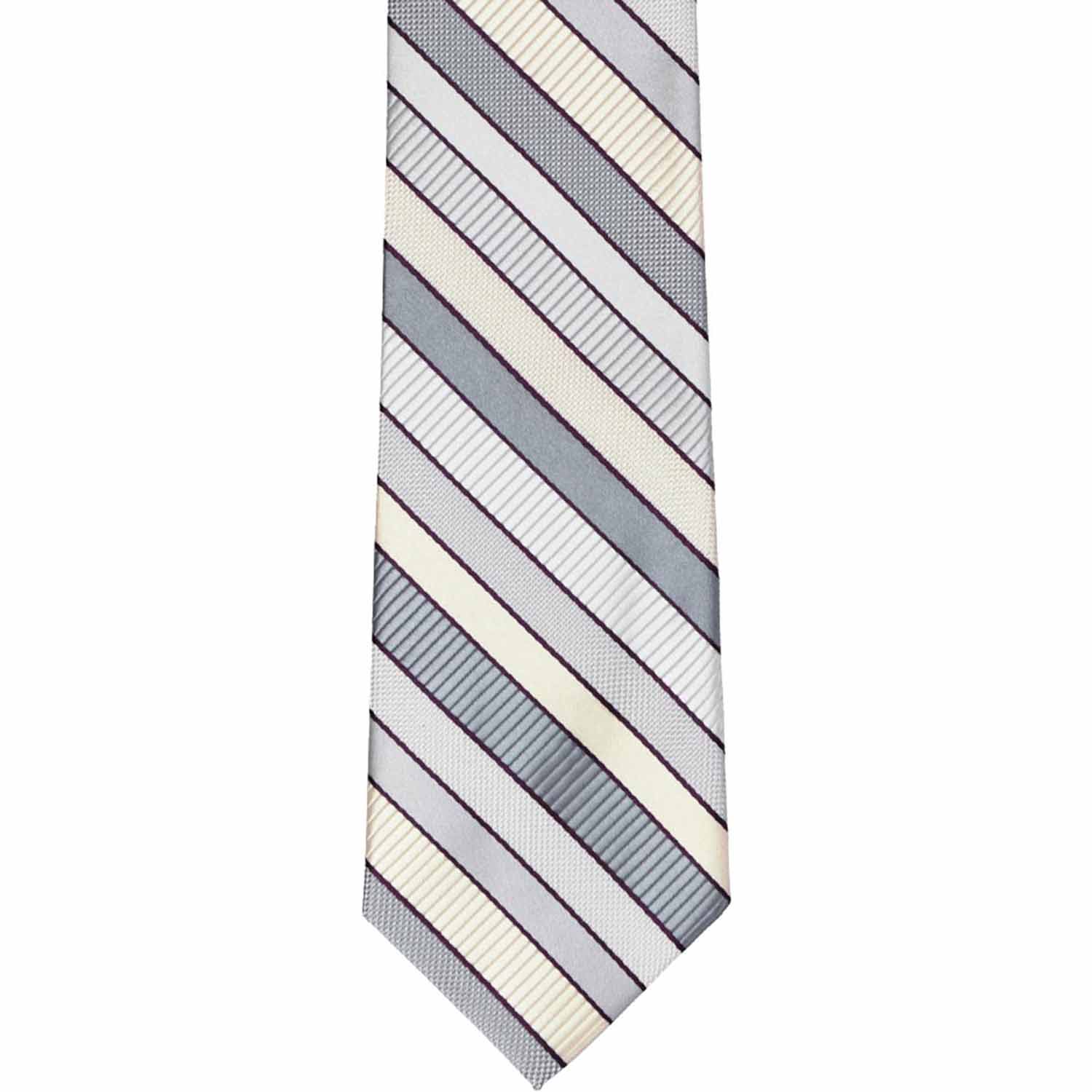 Here’s the perfect boys' tie for any occasion! This silver striped tie is a versatile go-to, making it easy to pull together a sharp look when you're short on time. Its classic design and cool color palette pair effortlessly with gray, navy, or black suits and slacks. Dressing him up for a formal event? Complete his outfit with the matching pocket square (sold separately) for a polished finishing touch!