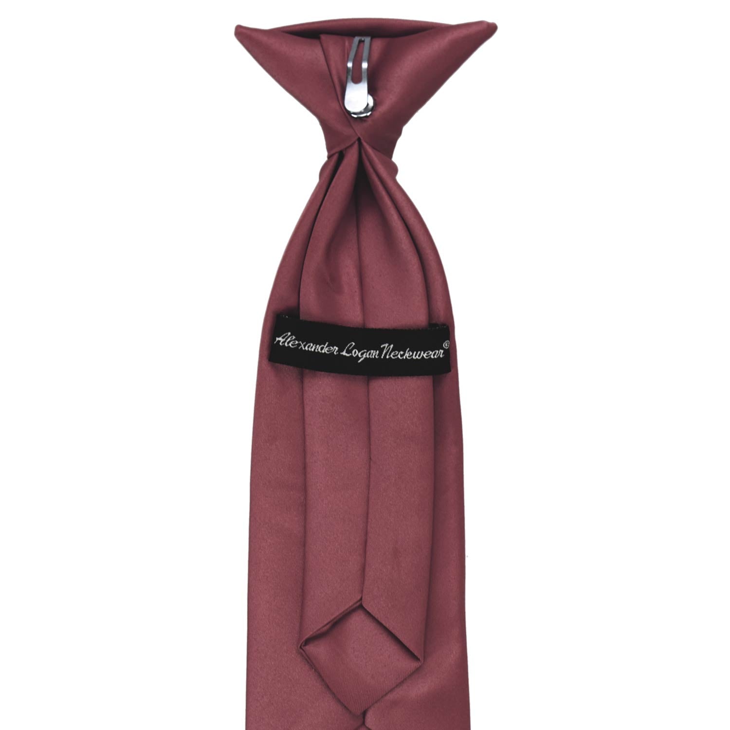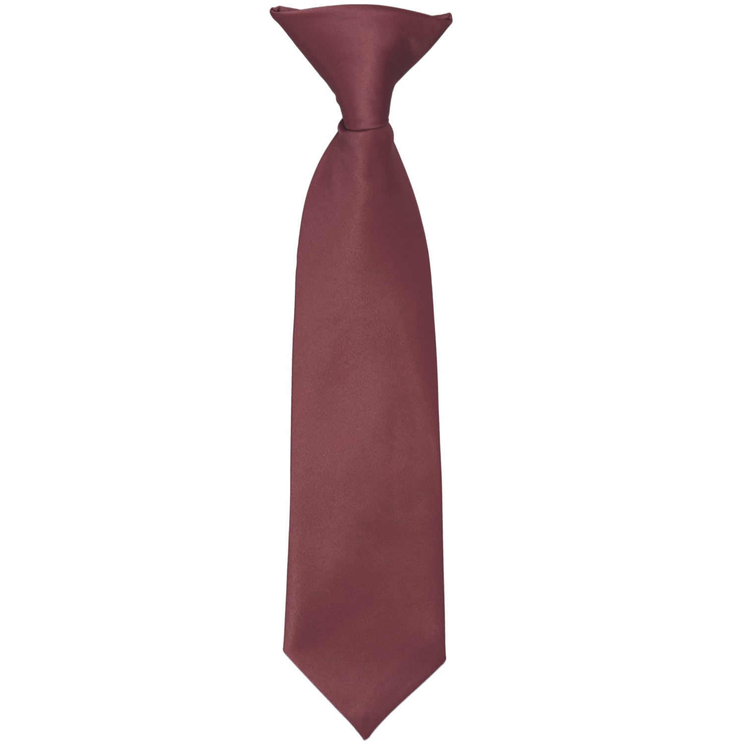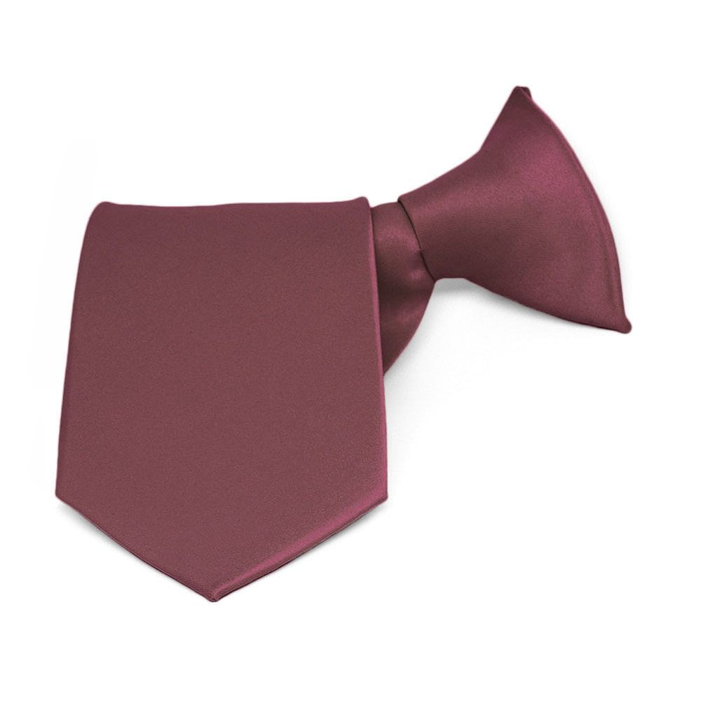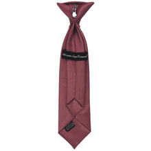 These boys' merlot clip-on ties are easy to use and sized just right for your little guy. Available in an 11-inch or 14-inch length, these pre-tied ties are sized to fit most boys from 2 to 10-years old. The clip on the tie simply attaches to the top of the boy's shirt, without any material around the neck. These boys' clip-on ties are designed to match our collection of men's merlot solid color neckties.