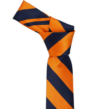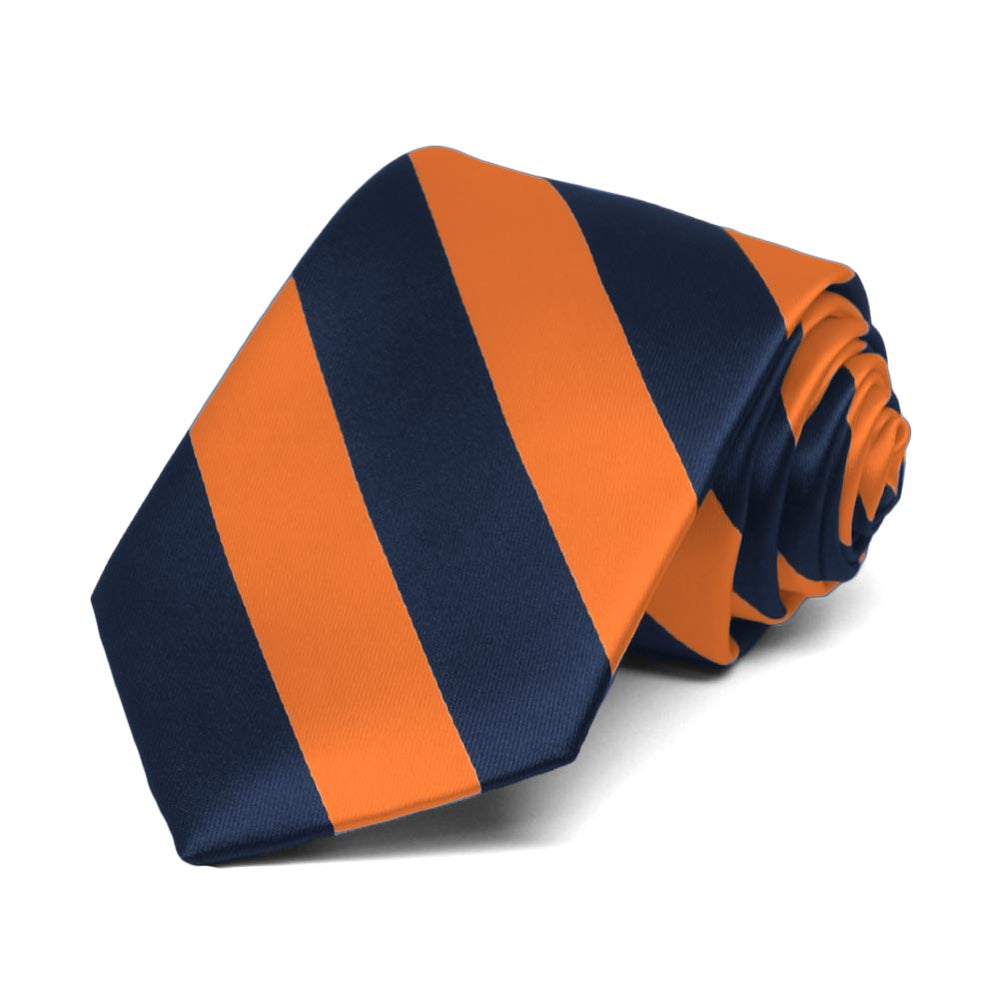 Here’s a striped tie he’ll wear again and again! The navy blue and orange combination is a top color combo for so many schools and sports teams. From wearing it as part of a school uniform to cheering loudly in the bleachers, this spirited tie is a must-have for representing his favorite team or colors. He'll feel the confidence of a grownup and look incredibly sharp when he ties this necktie himself, achieving a truly authentic look.