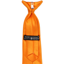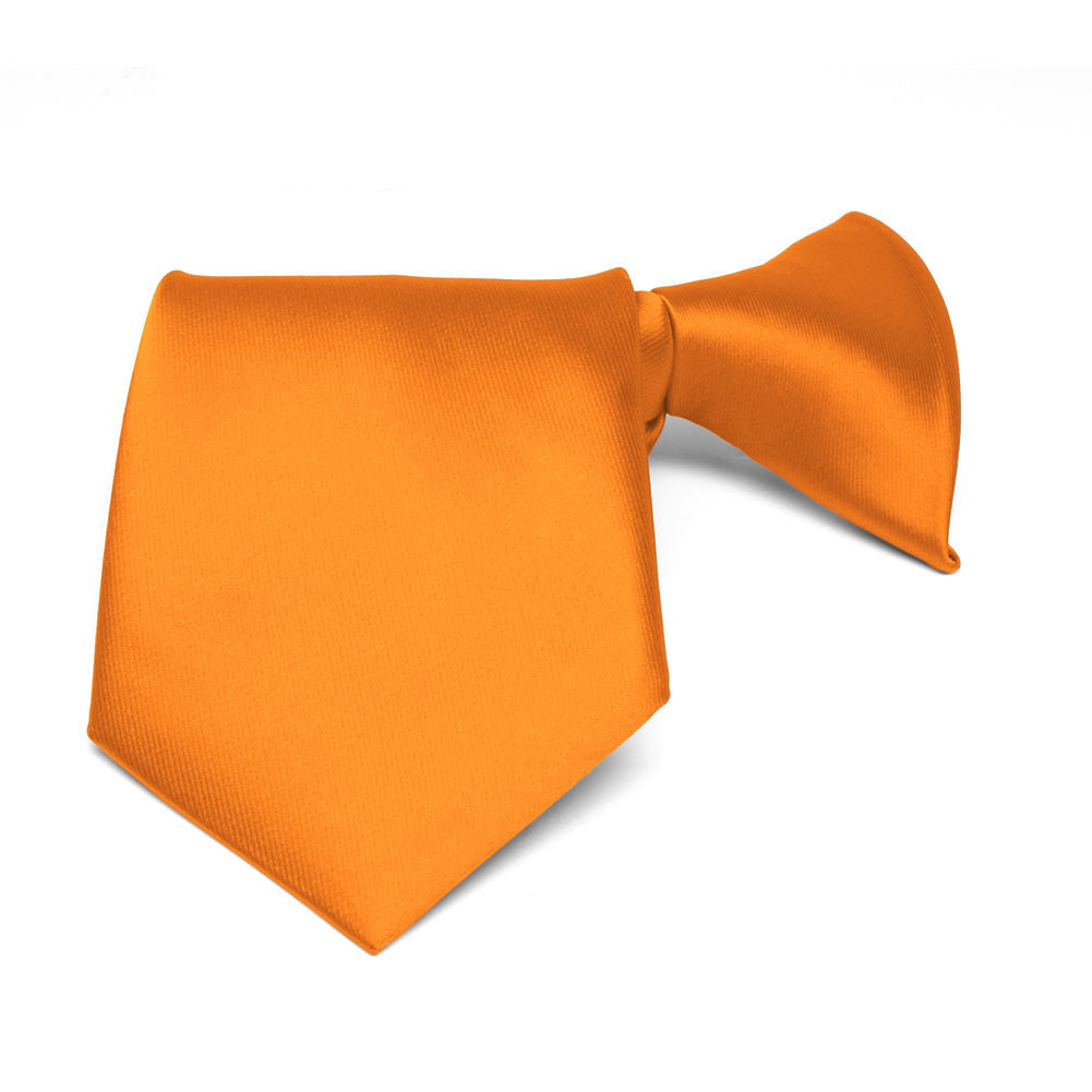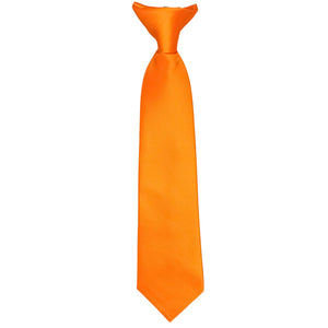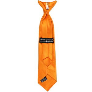 This boys' orange clip-on tie is pre-tied and easy to use. It's made from durable and heavyweight woven material with slight ribbing. Choose from an 11-inch or 14-inch length for boys 2 to 10-years old. The clip on the tie simply attaches to the top of the boy's shirt, without any material around the neck. Matching men's ties available.