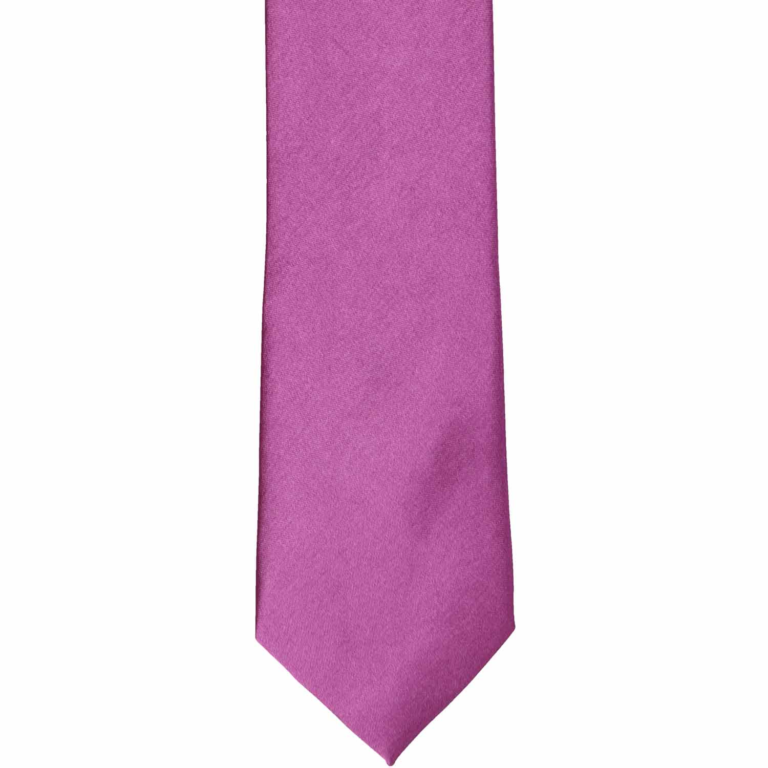 This vibrant orchid boys' necktie will instantly enliven his outfit for any dressy occasion! This bold, pink-toned purple color is eye-catching and can be worn beautifully year-round for holidays, weddings, or school events. Watch as his look transforms when you pair it with neutral attire like gray, navy blue, or black. He'll feel completely grown-up and confident when he ties the tie himself, creating a truly authentic, sharp ensemble.