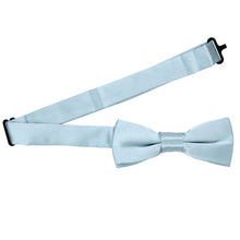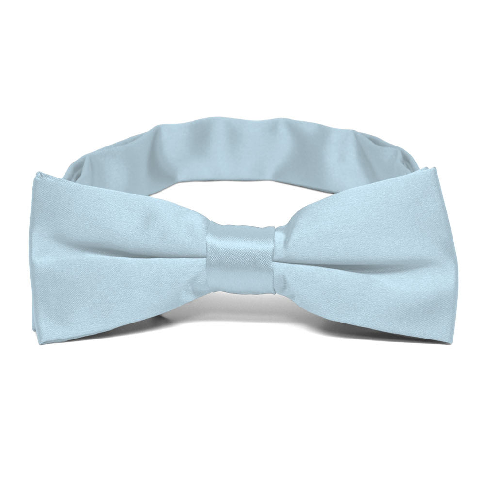 A charming boys' pale blue bow tie sized just right for your little guy. The bow tie is pre-tied and features a safe and easy-to-use hook-and-eye closure. Measuring 4-inches across and 1.5-inches tall, this boys' bow tie is sized for most boys from baby to 10-years old.