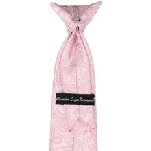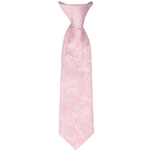 Finish his wedding-day ensemble with this boys' pale pink paisley clip-on tie, perfectly designed to match the entire wedding party. The sophisticated tone-on-tone pattern, accented with delicate white stitching, complements a wide range of groomsmen suit colors. Whether paired with a traditional suit or a charming suspenders-and-slacks look, this tie guarantees your ring bearer will be polished, stylish, and picture-ready.