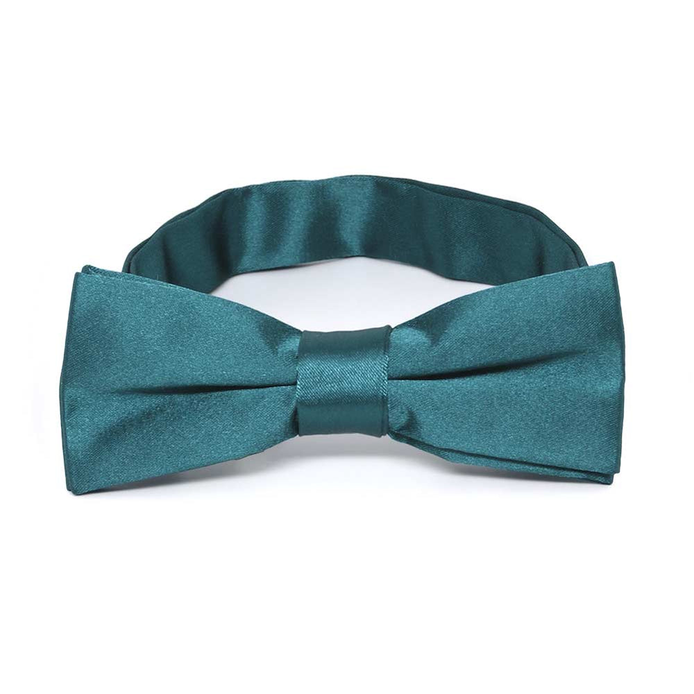 A charming boys' bow tie in a pond blue color. The bow tie is pre-tied and features an easy-to-use hook-and-eye closure. Measuring 4-inches across and 1.5-inches tall, this bow tie is sized for most boys from baby to 10-years old.