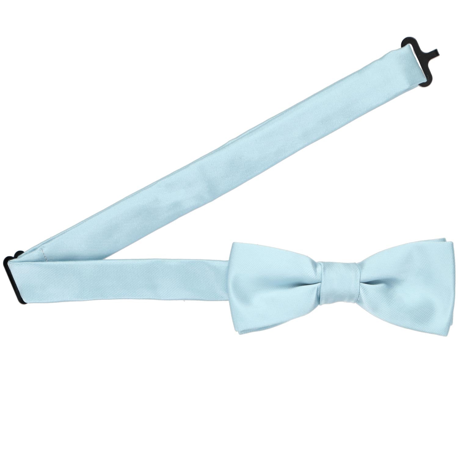 A charming boys' powder blue bow tie sized just right for your little guy. Made from heavyweight woven material with slight ribbing. The bow tie is pre-tied and features a safe and easy-to-use hook-and-eye closure. Measuring 4-inches across and 1.5-inches tall, this boys' bow tie is sized for boys from baby to 10-years old.