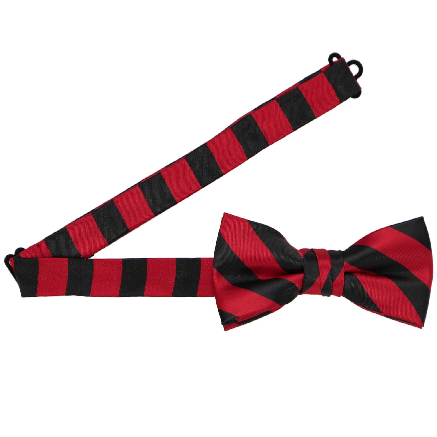 We designed this boys' red and black striped bow tie to coordinate with our popular men's stripes. At 0.5-inches, the stripes are slightly skinnier than the men's size to be more proportionate for a child. The bow is pre-tied with a band collar sized for most boys from baby to 10-years old. Look for this color combo in a men's necktie, bow tie, skinny tie and pocket square, too.