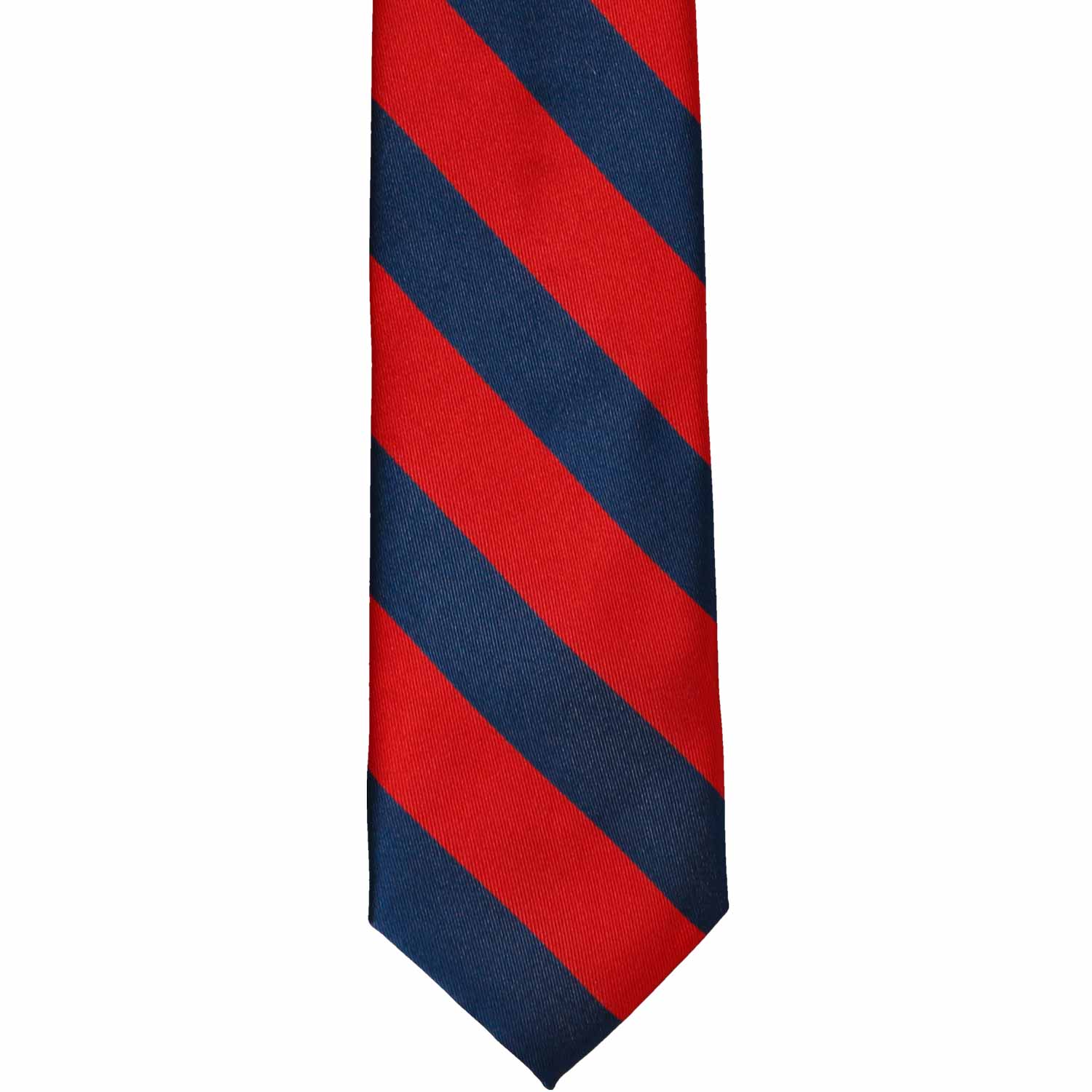 Red and navy blue stripes are a timeless and popular combination for school wear, and this tie is no exception! This versatile accessory will take him from a day at school to important ceremonies or family events. Easily dress it up with a navy blue suit for a formal event, or keep it classic with a white button-down and slacks for a school uniform. He's going to love the versatility of this tie, and he'll feel confident and sharp when he ties this necktie himself.