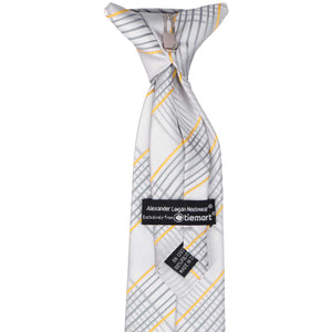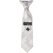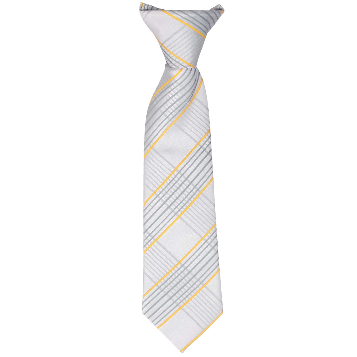 You can’t go wrong with this timeless choice! This boys' soft gray plaid clip-on tie features delicate hints of gold and silver, adding a stylish touch without being too bold. The sophisticated plaid pattern makes it versatile for both formal and casual occasions. Pair it with a dark gray or black suit for a sharp, polished look—perfect for family photos, church, or any special event!