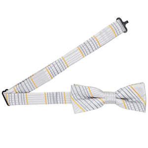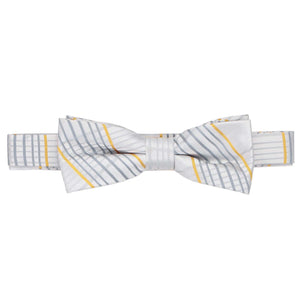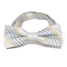You can't get more classic than this! This soft gray plaid boys' bow tie, accented with subtle hints of gold and silver, strikes the perfect balance between bold and refined. The large-scale plaid pattern adds interest without overwhelming, making it ideal for both formal events and casual occasions. Heading to a wedding or family gathering? Pair it with a dark gray or black suit, and he’ll be one of the best-dressed kids in the room.