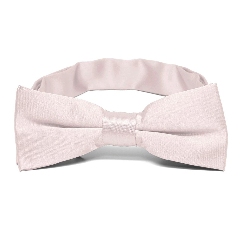This charming boys' tea rose pink bow tie is sized just right for your little guy. The bow tie is pre-tied and features a safe and easy-to-use hook-and-eye closure. Measuring 4-inches across and 1.5-inches tall, this bow tie is sized for most boys from baby to 10-years old.
