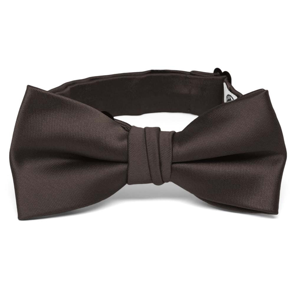 This boys' truffle brown bow tie is the deepest brown in our collection, offering a rich and sophisticated touch perfect for formal occasions like weddings. Its elegant hue pairs beautifully with a variety of suit colors, especially navy blue, which helps make the earthy tones pop. Available in a range of men’s styles, lengths, and widths, this bow tie gives you the flexibility to mix and match with the rest of your wedding party, ensuring a coordinated yet stylish look for everyone.