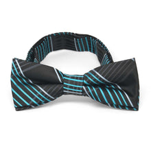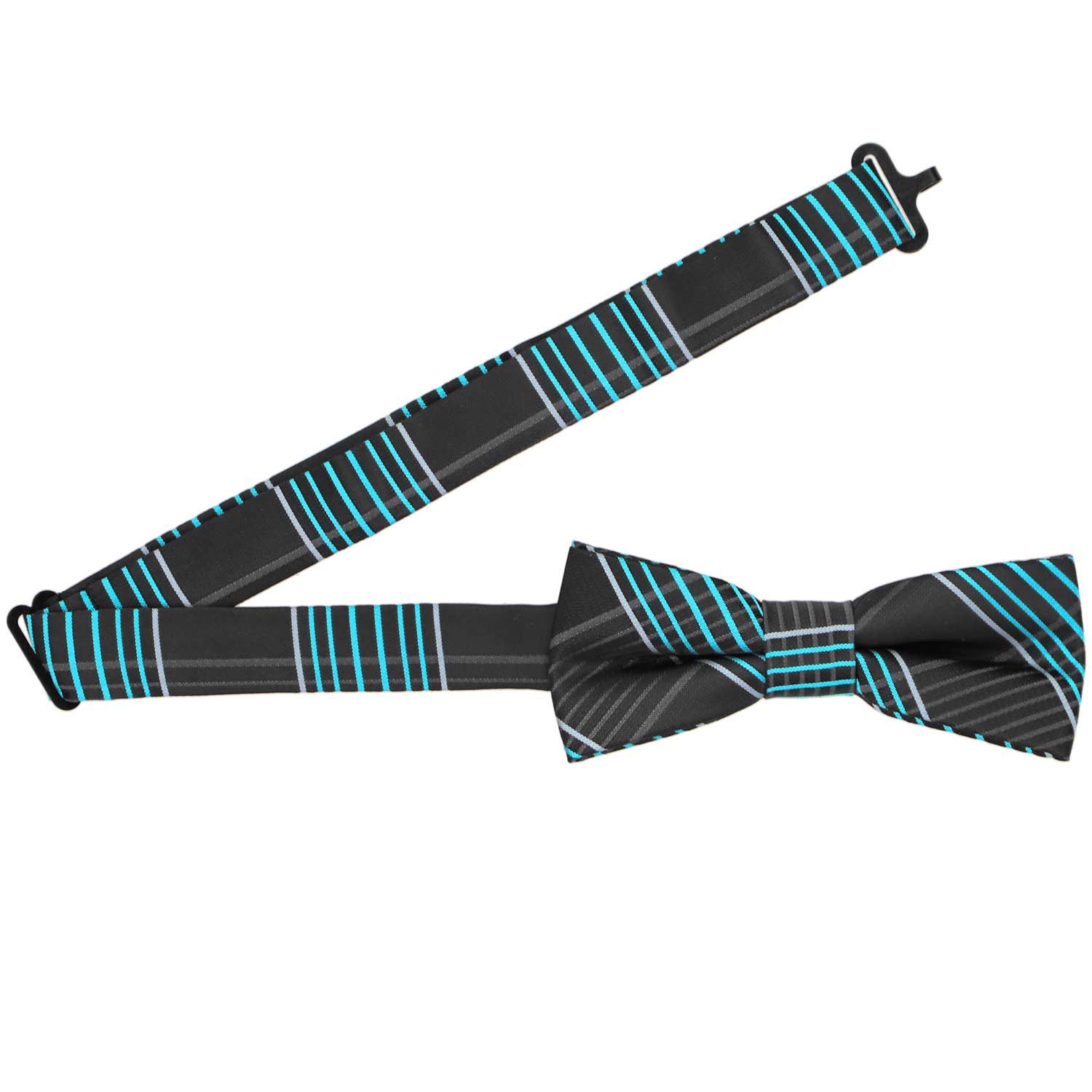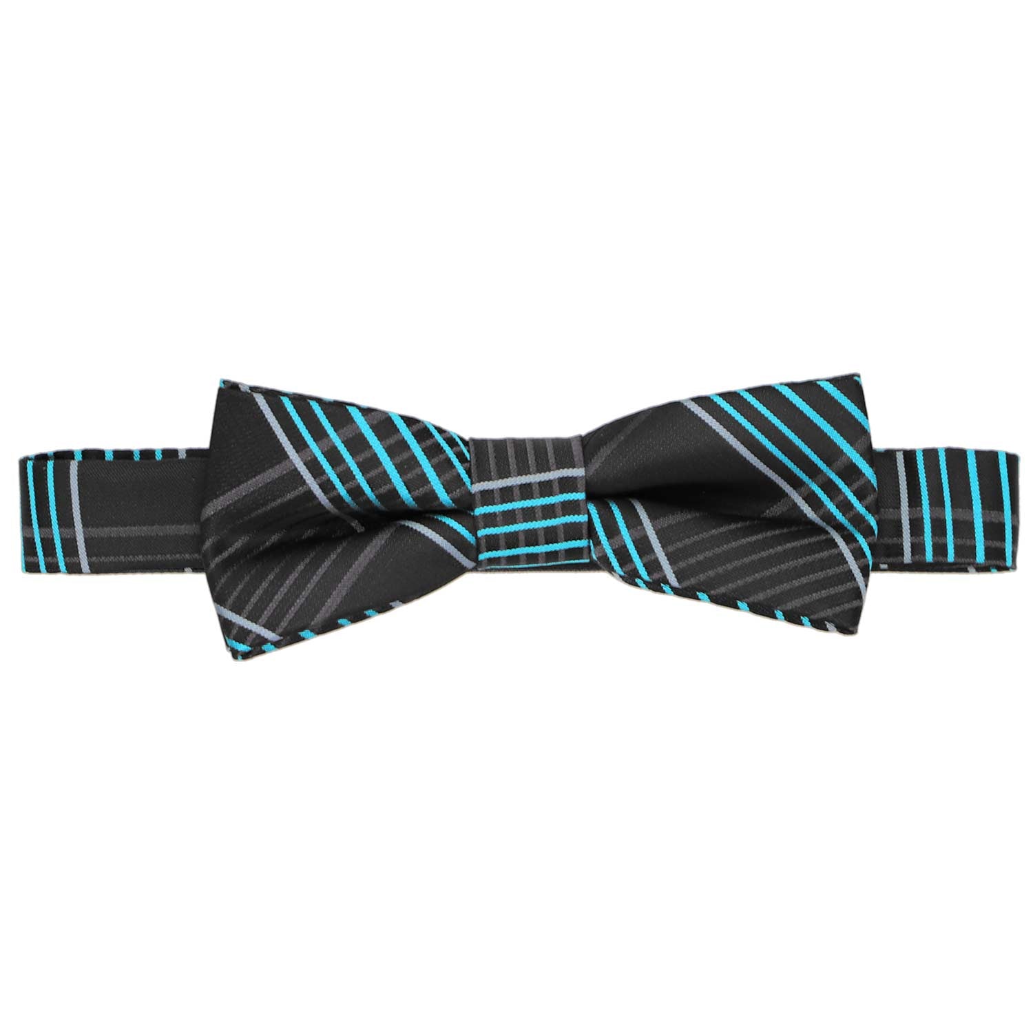 This stylish black plaid boys' bow tie, accented with striking turquoise details, offers a modern twist on a classic design. The dark background makes it effortlessly versatile, pairing well with black or gray suits for any occasion. Whether for a formal event or a polished everyday look, this bow tie adds just the right touch of sophistication.