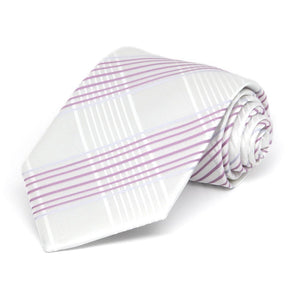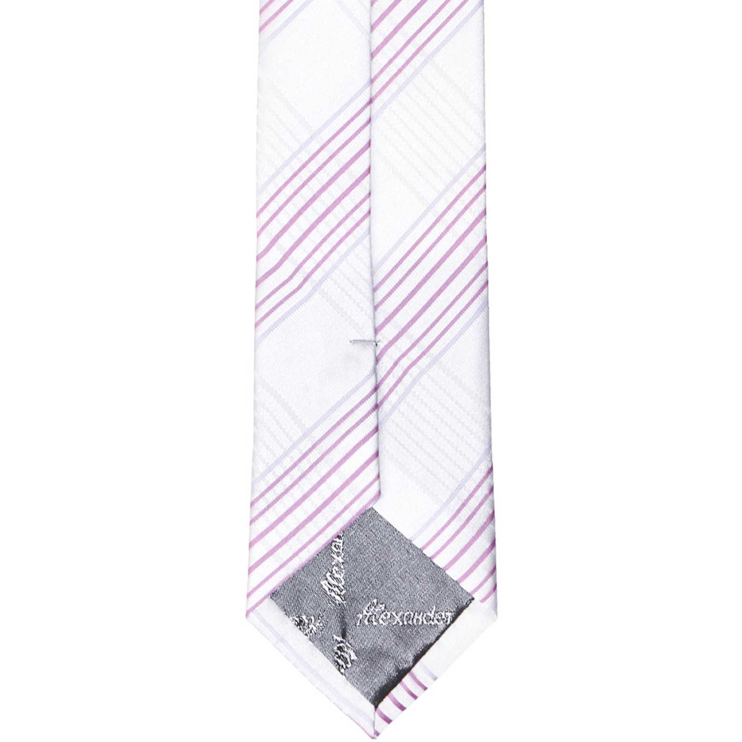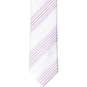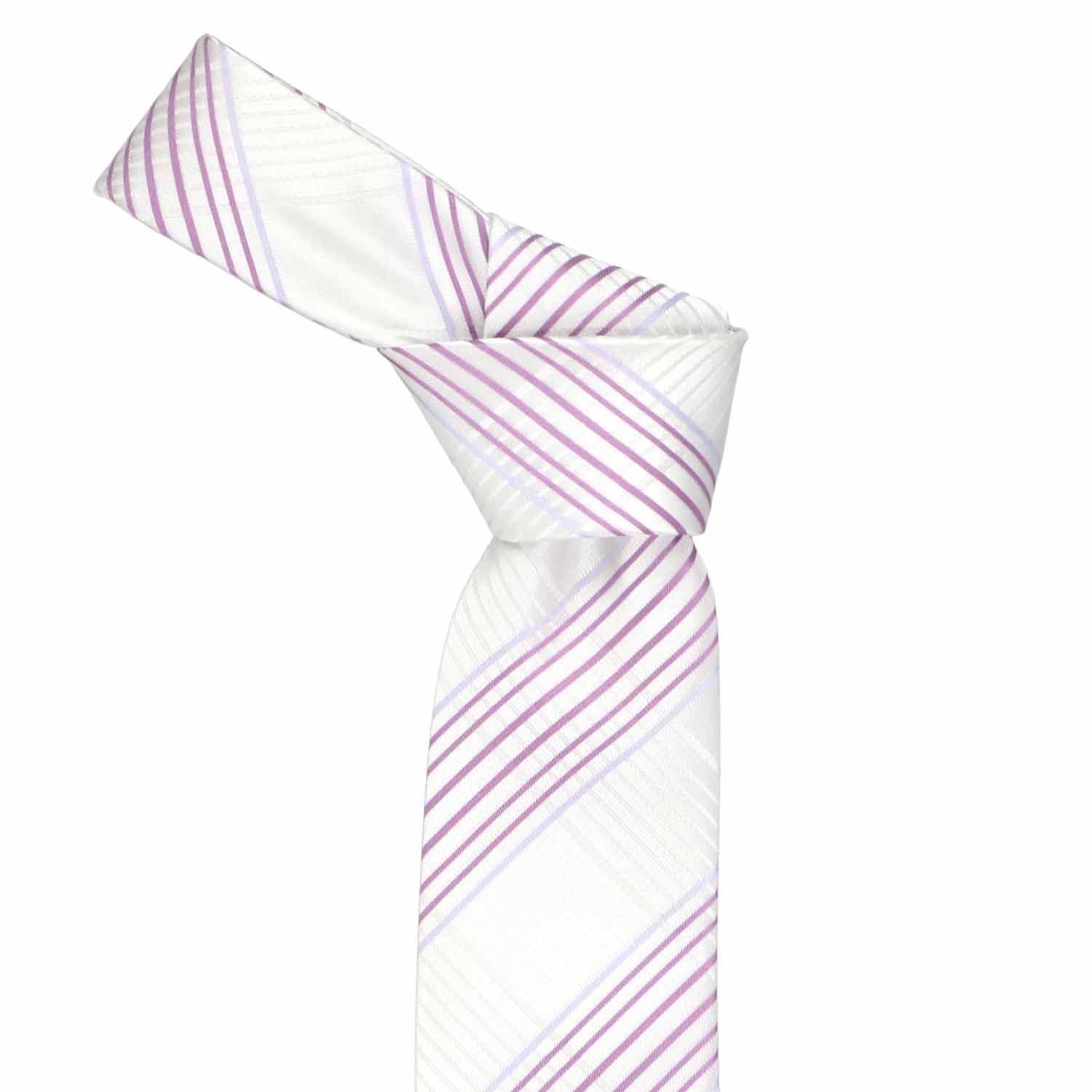 This stylish boys' tie is perfect for occasions like weddings, First Communion, and family gatherings. Light purple hues stand out against the white background, creating a bold plaid pattern that’s both modern and fun. Dress it up with a fitted navy or gray suit for formal events, or keep it casual with gray slacks and a crisp white shirt. Those cheerful pops of color are just what he needs to brighten up his warm-weather wardrobe!