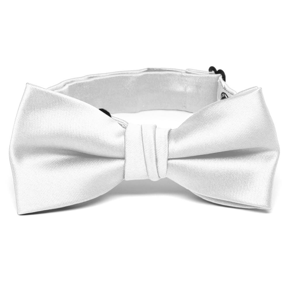 Our boys' solid white bow tie is the ultimate classic for formal occasions. This crisp, white bow tie is a favorite choice for weddings. Our premium white comes in a variety of styles, lengths, and widths, so you can outfit the entire wedding party. Don’t forget to check out our matching accessories available for purchase!