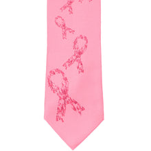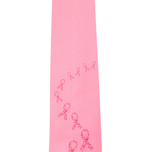 Show your support with this Breast Cancer Awareness necktie. It features a trail of pink ribbons that gradually fade up the length of the tie. The uplifting design is printed about 12-inches up the tie front. The remainder of the tie, including the back, is solid pink.