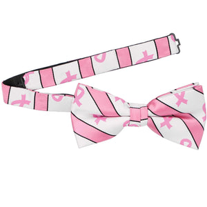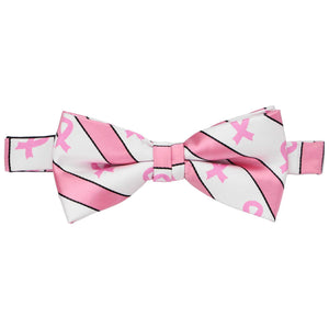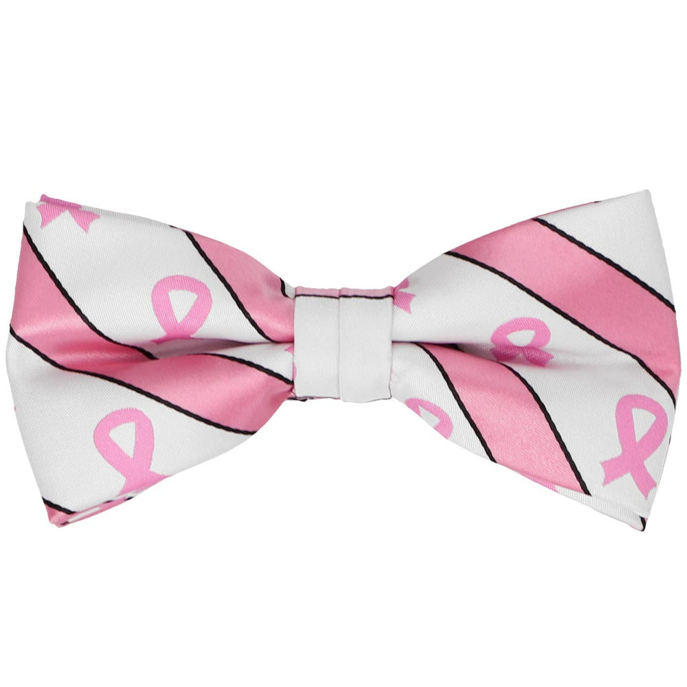 Show your support in the fight against Breast Cancer with this elegant pink ribbon bow tie. The pink and white design is suited for the office, a formal gala or any other Breast Cancer Awareness event. If you're wearing it with a suit, try it with black or gray to make the small black stripe pop. We recommend adding a pair of pink ribbon socks (sold separately) to complete your look.