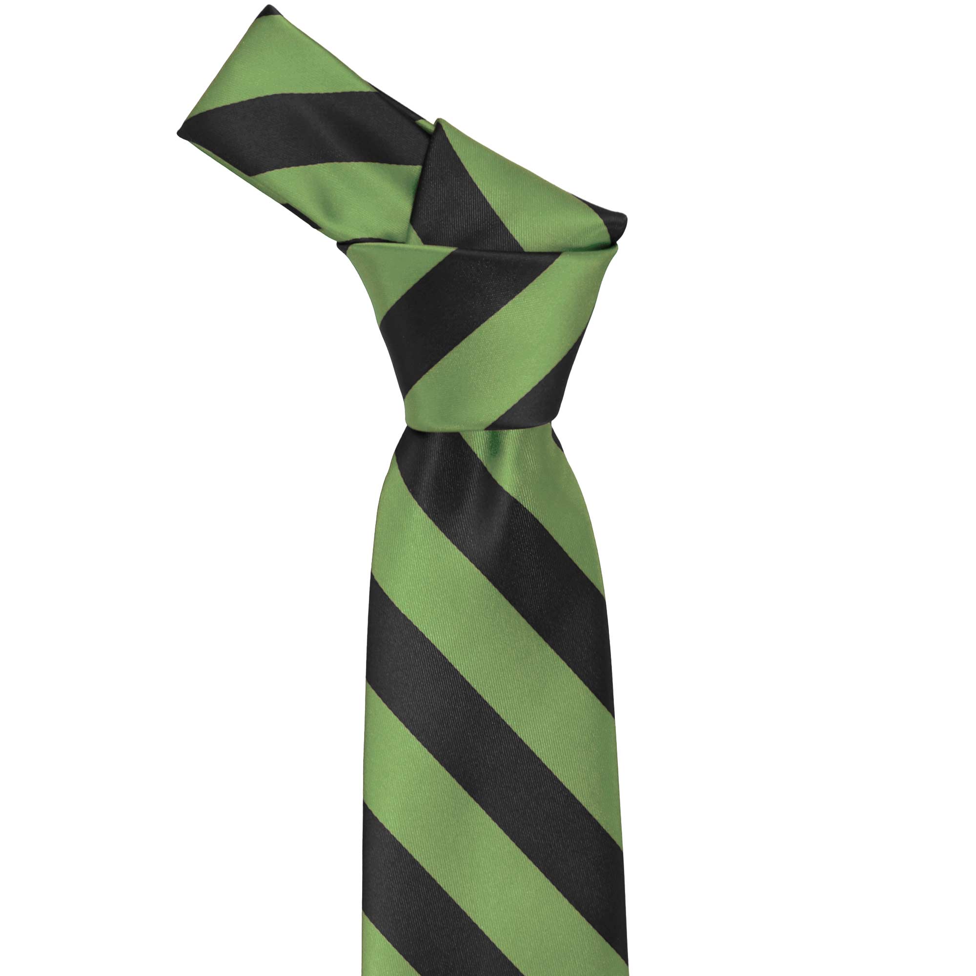 This bridal clover and black striped tie provides a subtle color combo that is popular for stylish everyday attire or your wedding day. The classic 0.75-inch stripes are the perfect width for getting noticed without being overwhelming. Add it to a black suit for a dashing formal look or use it to match company colors as part of a uniform.