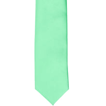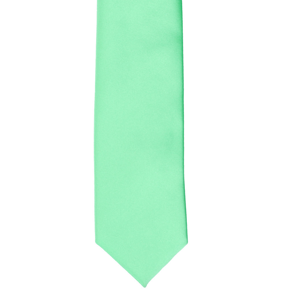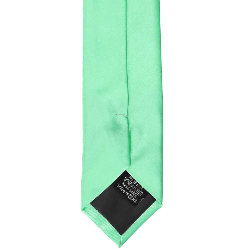 Dive in and take a closer look at this bright mint slim necktie. This stylish tie keeps things on trend with its trimmed down, 2.5-inch width. Add it to your destination wedding ensemble for a refreshing burst of color. When wearing it with a suit, take your pick: This hue complements navy blue and gray quite well. To complete the look, add the matching pocket square (sold separately).