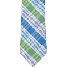 You'll be the talk of the room when you wear this plaid tie. The blue and green shades are bright and refreshing. Don't worry too much about how to wear it. It's going to look good with just about anything, from a navy blue suit to a lightly checkered dress shirt.