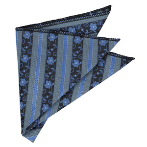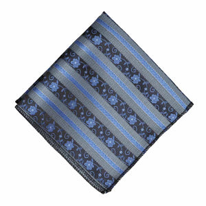 Not usually a floral guy? This brilliant blue floral striped pocket square might just change your mind. Blending bold stripes with subtle florals, it adds a fresh, modern twist to your wardrobe while keeping things effortlessly sophisticated. Easy to match like a solid color, but with added visual appeal, this pocket square is perfect for everyday office wear or elevating a formal look. Pair it with a navy blue or gray suit, or get creative with other colors—its versatility knows no bounds. Complete the look with the matching tie (sold separately).
