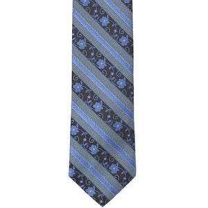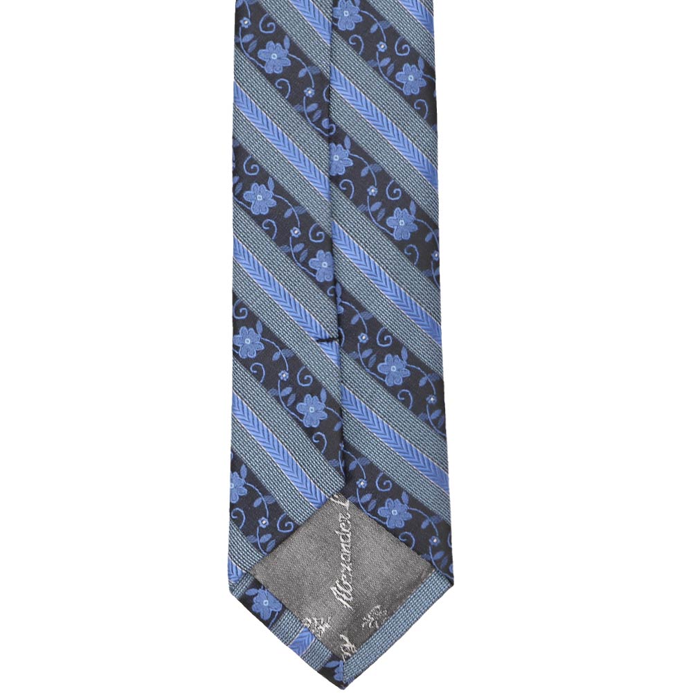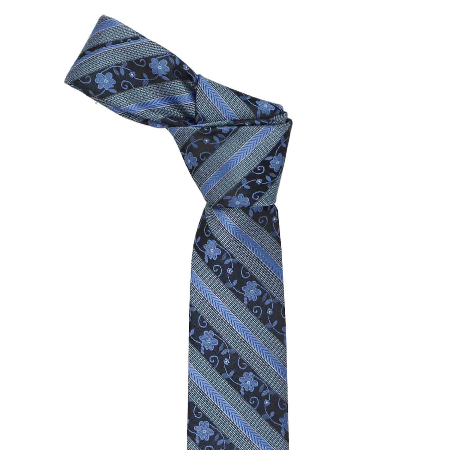 If floral ties aren't usually your thing, this slim necktie might just change your mind with its bold combination of stripes and florals. The vibrant blue hue is as versatile as a solid tie but brings a more dynamic, eye-catching style. Perfect for everyday office wear or formal occasions, this tie pairs beautifully with fitted navy blue or gray suits, though it complements other colors just as well. Give it a try—you might discover a new favorite pattern!