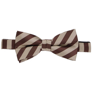 This brown and beige bow tie is the perfect neutral. The alternating ribbed and satin stripes are versatile for any occasion, formal or not. It will give life to your everyday office attire, but also complement a rustic wedding look when worn with our tan suspenders. Try wearing it with a navy blue suit and the matching pocket square, sold separately.