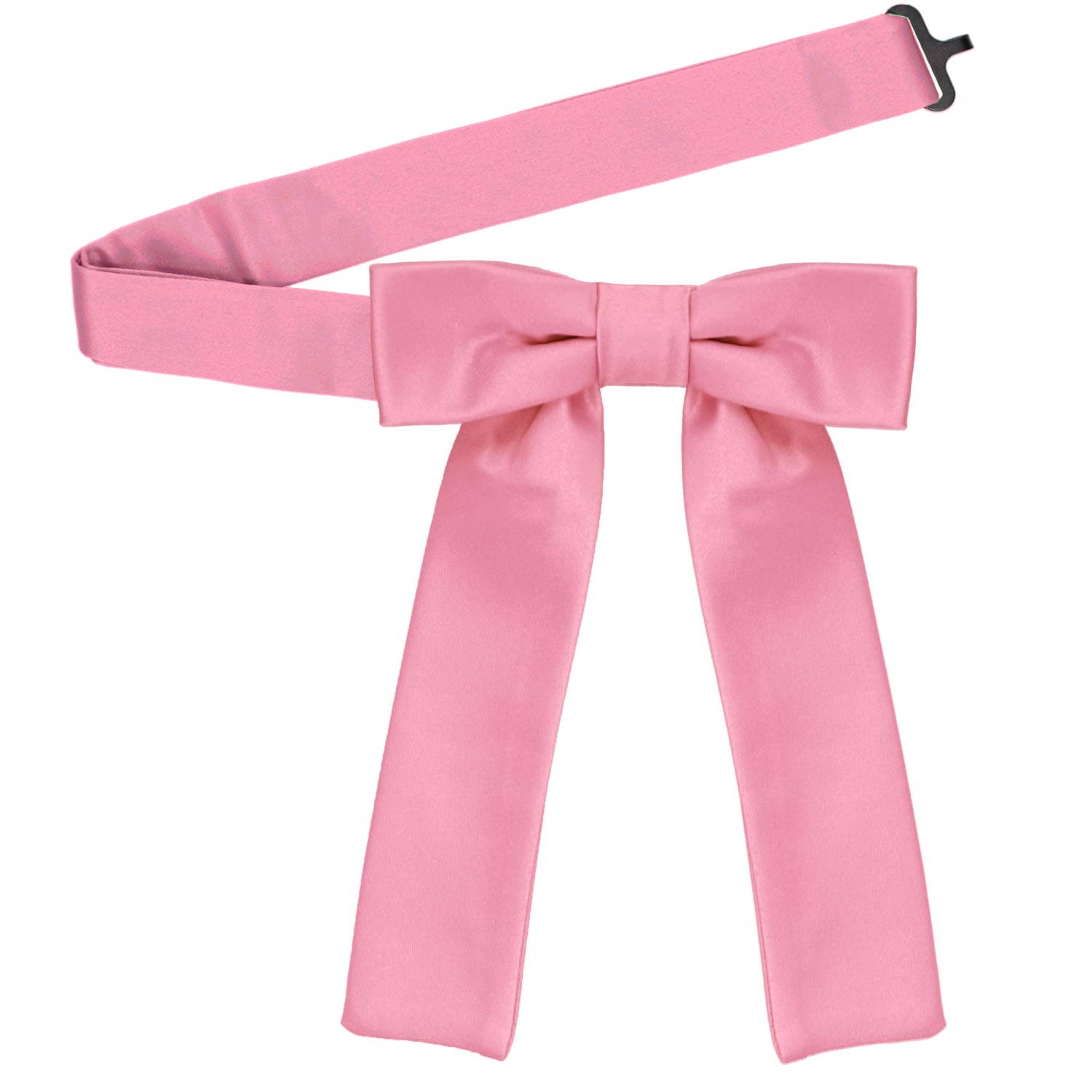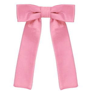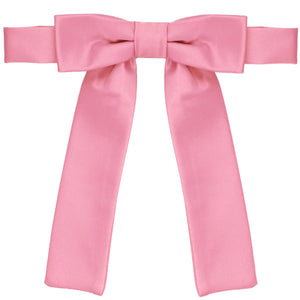 As far as size, the bow measures about 4-inches across and the string tails are 5-inches long. A great length and width for everyday looks, uniform wear or even your wedding day.