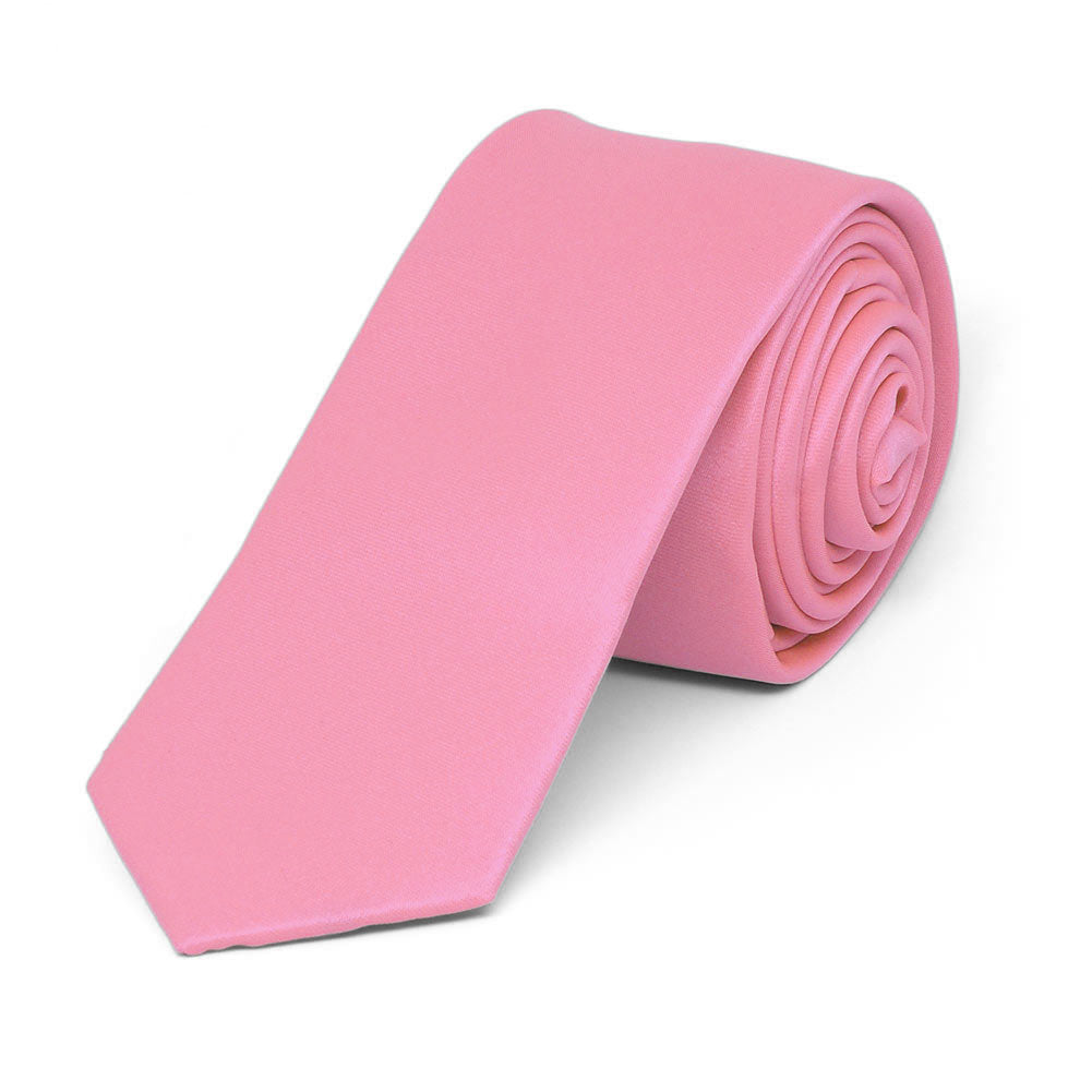This bubblegum pink skinny tie features our thinnest width at just 2-inches wide. Our customers are wearing it for cool group attire. Don't be afraid to wear pink professionally, too. This skinny tie will look great with jeans in creative and casual workplaces.