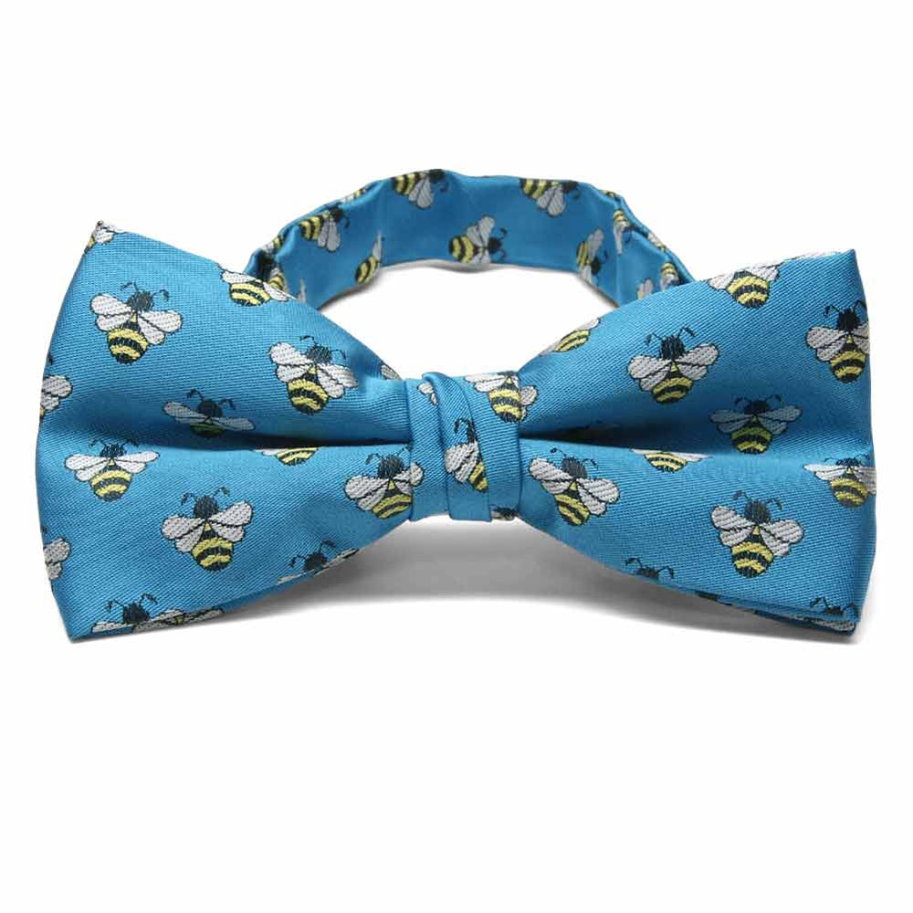 Our bumblebee bow tie is buzzing with style and is sure to take your wardrobe from zero to hero! Featuring a pre-tied bow with a buzzworthy bumblebee pattern on a blue background, it's a fun and fashionable way to dress up any casual or work look. It's the perfect accessory for all your springtime adventures!