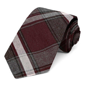 Get your group ready for school in this burgundy and gray plaid tie. The pattern is classic and designed to match your school's colors. With your large student body in mind, we also make this plaid pattern in bow ties, pre-tied ties and crossover ties for ages K-12.