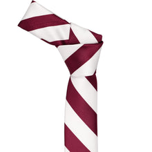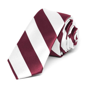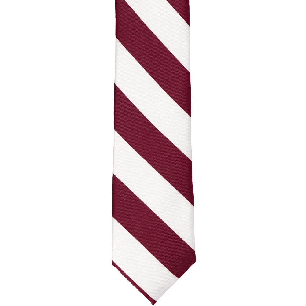 Our most popular striped ties are now available in a trendy, 2-inch width. This burgundy and white skinny striped tie is made from a heavyweight woven material with a smooth, satin finish. Look for this popular color combo in other neckwear styles and boys' sizes.