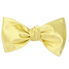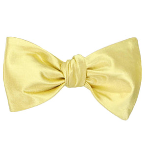 Tie your own bow with this butter yellow self-tie bow tie. Can be worn tied or untied. The adjustable band allows you to fit the bow to your neck size.