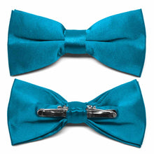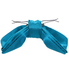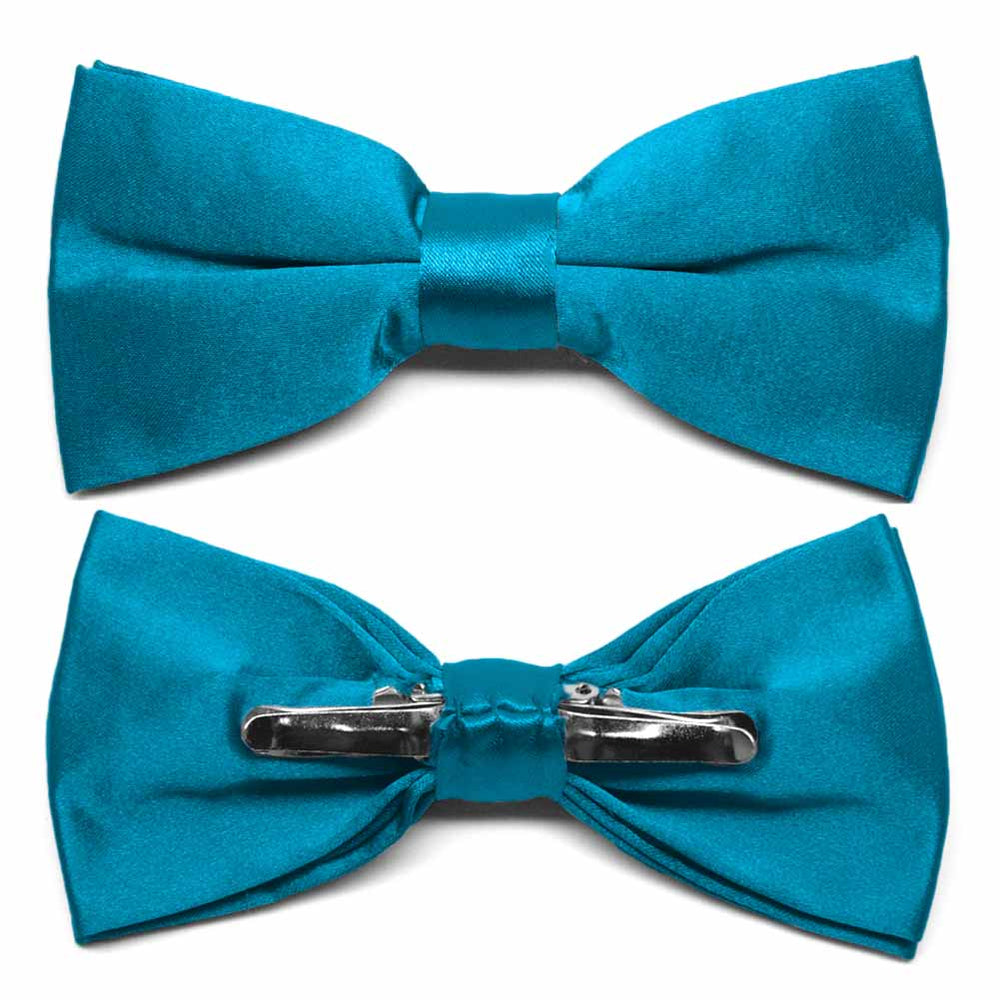 Wear a perfect bow every time with this Caribbean blue clip-on bow tie. This pre-tied bow features a heavyweight clip that discretely attaches to either side of your shirt collar material for a secure fit. One size fits all, regardless of neck size. Has a shiny, satin look. Matching pocket squares available.