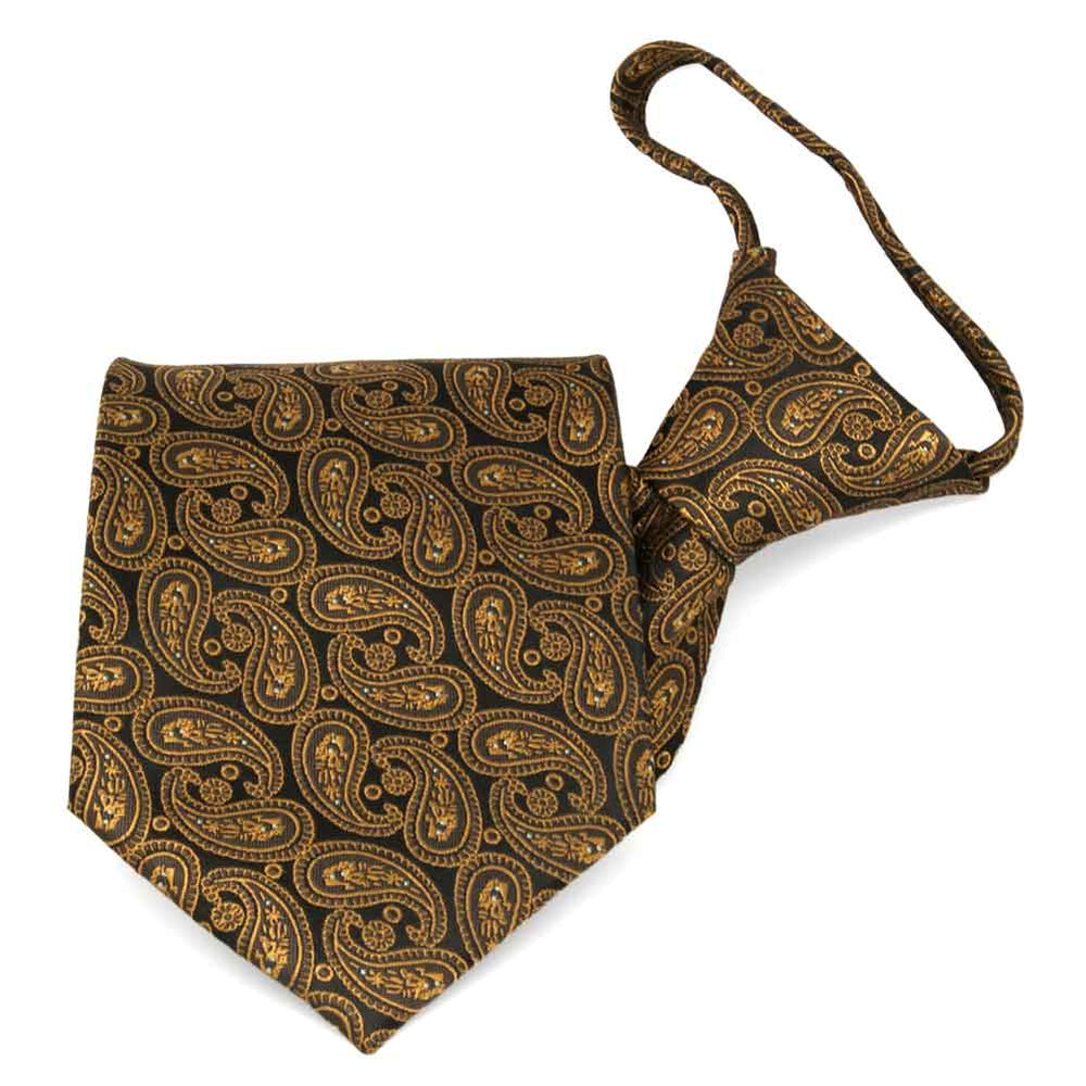 Embrace the cozy vibes of fall and winter with this cocoa brown paisley zipper tie. The rich hue and intricate paisley pattern add just the right amount of character while keeping your look polished and office-ready. Designed for effortless wear, the pre-tied zipper style ensures a perfect knot every time. Pair it with a beige or navy suit for special occasions, or keep it business casual with tan slacks and a crisp white button-down. A stylish and easy-to-wear essential for the cooler months!