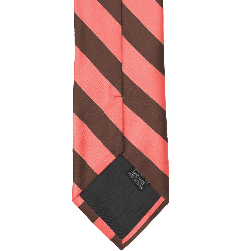 Cozy up to this striped necktie in bright coral and brown. It's a great choice for daily office wear. Pair it with a tan or beige suit in the spring and summer. Keep wearing it when the temps drop by adding it to a dark brown, navy or even an olive green suit in the fall and winter. A matching pocket square is available for more formal occasions (sold separately).