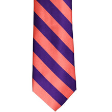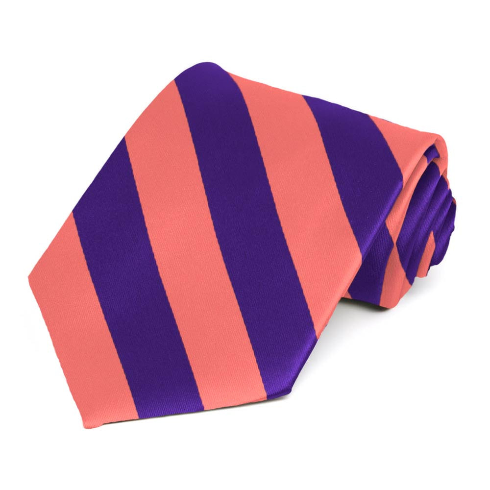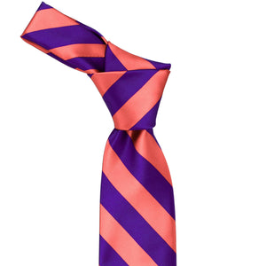 Part of our exclusive (and bestselling) line of striped neckties. Bright coral and dark purple stripes create a sleek color combo for vibrant everyday attire. Made from 100% polyester microfiber.