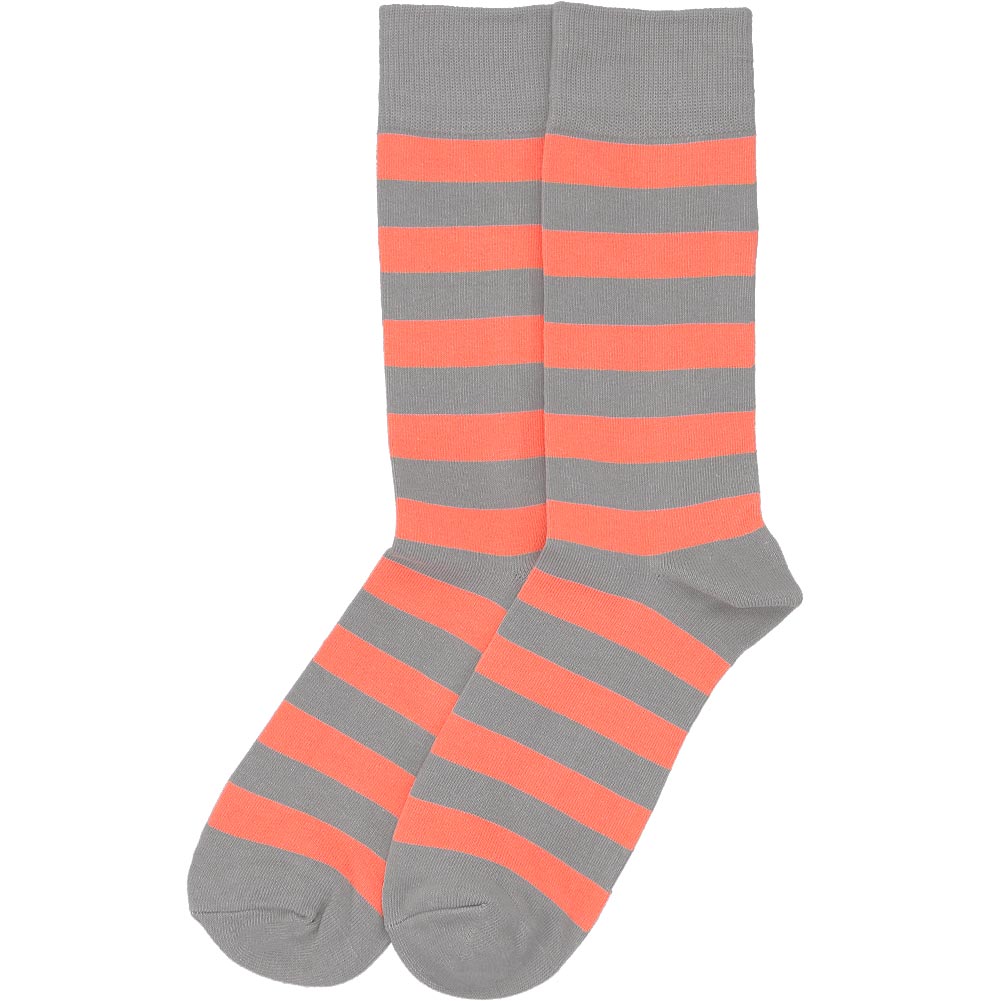 These colorful coral and gray striped socks are so fun! These are quality striped dress socks for everyday wear, but the unique color combination is perfect for wedding socks, too.