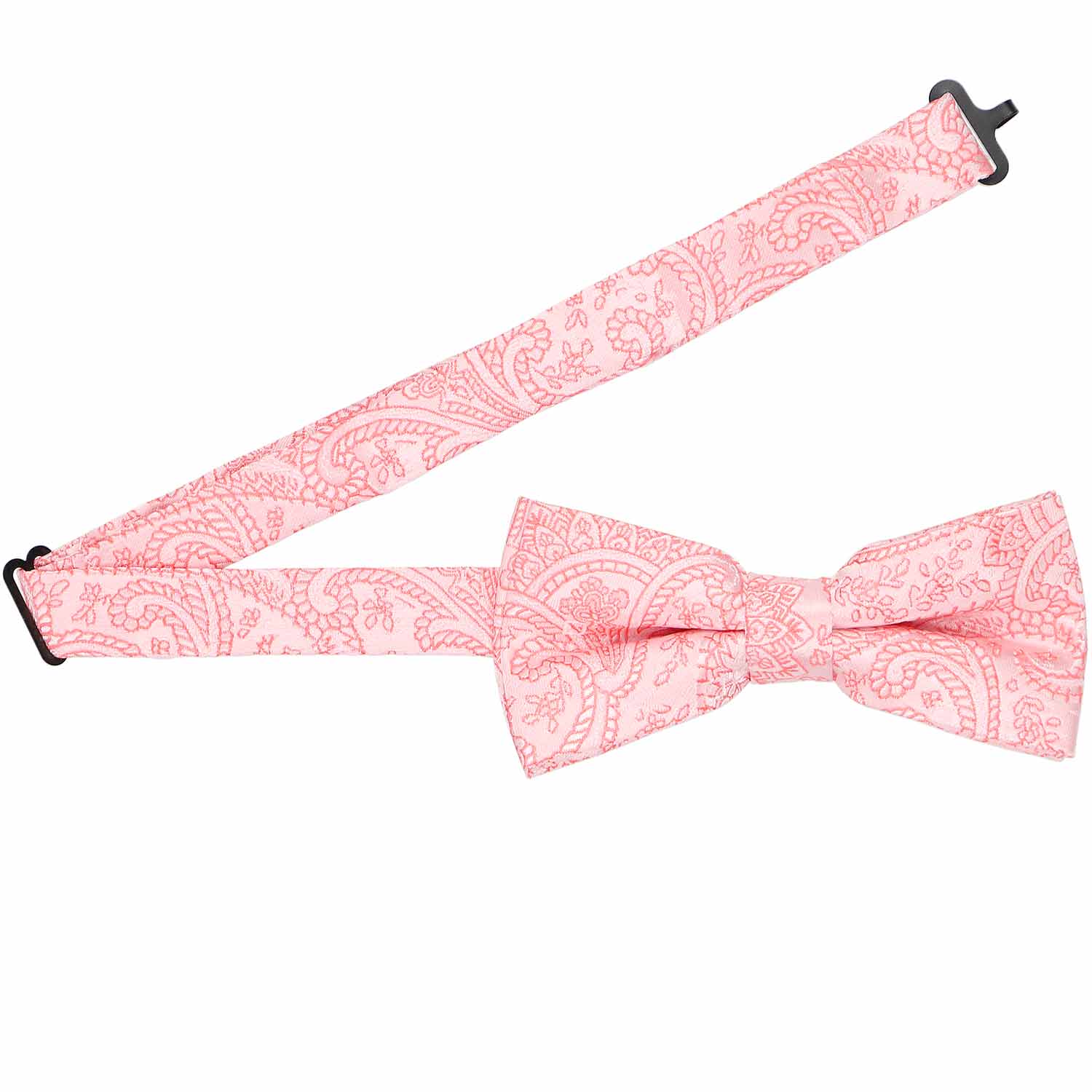 Prepare to make a statement with this coral paisley bow tie. Perfect for summer events, a romantic dinner, or your wedding day, it’s an ideal choice for a groom. The blend of light and dark coral tones in the pattern complements a range of coral wedding colors. Pair it with a dark gray or navy blue suit for a look that is sure to leave a lasting impression. And don't forget to purchase the matching pocket square to top off your look!